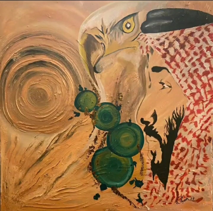 وإضافة خصيفان أن مشاركتي كانت بلوحة واحدة كانت تتكلم وتعبر عن مدى قوة المملكة العربية السعودية وتشبيهها بجبل طويق حيث دمجت الإبل في اللوحة بحكم أن أحنا في عام الإبل.