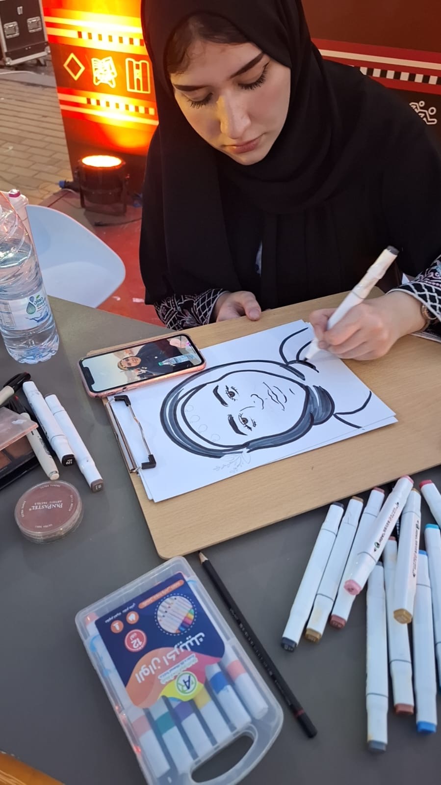 اطلقت الهيئة الملكية لمدينة مكه المكرمة والمشاعر المقدسة فعالياتها ليوم الخميس ٢٢ نوفمبر بمناسبة  يوم التأسيس  لهذا الوطن الشامخ وذلك بموقع الهيئة بممشى مزدلفة في نسختها الثانية تحت شعار "مكه تجمعنا" بالإضافة لفعالية خاصرة عين زبيدة أحد المعالم التاريخية بمكة الموغلة في القدم وتأتي هذه الفعاليات بالشراكة مع أمانة العاصمة المقدسة والغرفة التجارية بمكه وشركة البلد الأمين وبرنامج خدمة ضيوف الرحمن ومركز تاريخ مكة المكرمة وشركة كدانة للتطوير والتنمية وكان التنظيم والتجهيزات على أكمل وجه وكانت صحيفة النهار متواجدة بموقع الهيئة لتغطية هذه الفعالية من خلال مندوبها المحرر الثقافي وشاهدنا في مدخل الموقع مجلس من بيت الشعر وأحد الشباب يحمل الصقر فوق يده وهذا المنظر له دلالة رمزية يرمز لهذا اليوم العظيم من أيام وطننا المجيدة وله دلالة على الكرم في إكرام الضيف ويرمز لتراثنا المتجذر عبر مئات السنين للأباء والأجداد ووضعت جدارية للزوار ليتفاعلو بالتشكيل عليها وهي تعبر عن تراث عريق لفن حياكة  السدو المطرز اليدوي بالجزيرة العربية قديما والمملكة هي إمتداد لهذا التراث العريق كما وضع مرسم كبير للزوار بمساعدة من عدة فنانين تشكيليين ووضعت أجنحة عبارة عن أكشاك لتقام فيها أي فعالية ولأننا نهتم بالجانب الثقافي أخذنا جولة على المعرض وكانت البداية مع الفنانة التشكيلية المبدعة الأستاذة نهله الحربي والتي هيئة لها الهيئة موقع لعرض لوحاتها الفنية والأستاذة نهلة كان جناحها من الأجنحة التي تلفت نظر الزائر لعرضها لبعض اللوحات المعبرة ولها دلالتها الرمزية ومنها لوحة فنية لخادم الحرمين الملك سلمان بن عبدالعزيز حفظه الله وهو يقبل العلم وكانت من اللوحات الجميلة والتي أبدعت فيها وأضفت جمال على الفعالية وتقول بأنها إستخدمت الألوان الزيتية على لوح من النحاس الخام الذهبي وتقول جاء إختيارها للون الذهبي دلالة على التألق والقيادة والثقة وهو لون الفخامة والنجاح والإنجاز والإنتصار وبعدها إنتقلنا لجناح الخطاط الماهر ذو الخط الجميل الأستاذ أحمد الزهراني ووجدناه متفاعل مع الزوار بتلبية رغباتهم في كتابة ما يطلبونه في هذا الفن العريق والذي يجيد جميع انواع هذا الخط والذي يعود للواجهة بالمناسبات والذي برع فيه خطاطين عرب منذ بداية تألقه في العهد الأموي وعرض علينا نماذج من أعماله وإلتقينا بجناحه الفنان التشكيلي الخلوق والصحفي العتيق المحرر الفني بصحيفة المدينة الأستاذ خير الله زربان وتجاذبنا معه الحديث وبالقرب من جناح الخط العربي توجهنا لفتاة رسامة من أهلنا من فلسطين الحبيبة وعرفتنا بإسمها هي الأستاذة ليندا الحداد والتي إستقبلتنا بالترحيب وبكل بشاشة ومعها والدتها واختها الصغرى يساعدانها وهي تقوم برسم اي زائر لجناحها يطلب منها ذلك وفي الحقيقة ليندا لديها الموهبة في هذا الفن الراقي وطلبنا منها تزويدنا بأحد أعمالها الفنية فلم تمانع وبكل سرور منها في الحقيقة الهيئة الملكية لمدينة مكة والمشاعر المقدسة قامت بمجهود كبير وواضح للزائرين من تهيأت كل مايحتاجه الزائر سواءاً فرد أو أسرة مثل مناشط ترفيهية ورياضية للأطفال وللكبار وكان التنظيم أكثر من رائع بإنسيابية في الدخول والخروج وذلك بهمة شباب الوطن من شباب وشابات ويستقبلون الزوار ويخدمونهم بكل سعادة وسرور والإبتسامة تعلو محياهم فكان هذا إنطباعنا عن هذه الفعالية