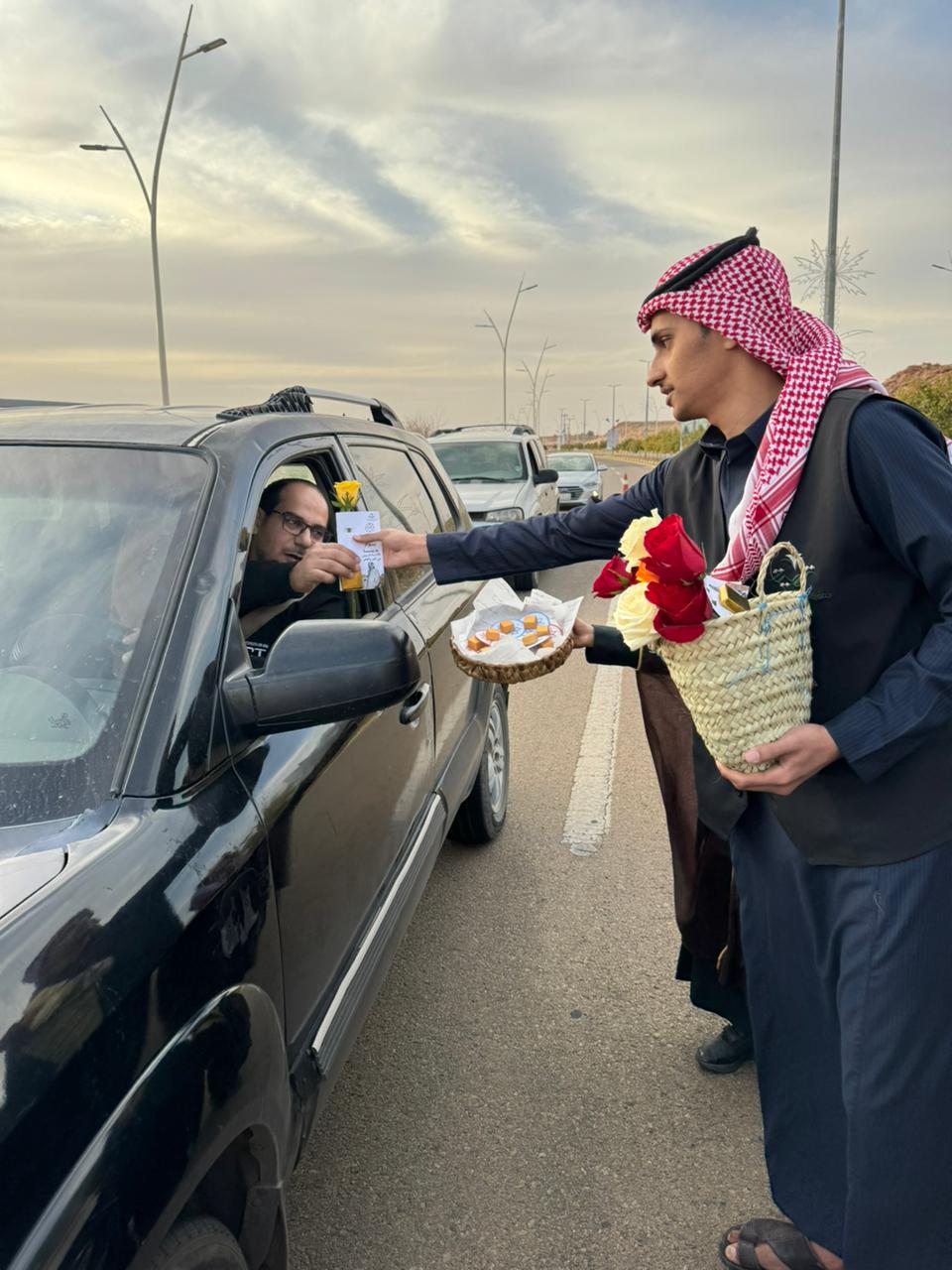 وتضمنت الفعاليات توزيع الهدايا والحلويات وباقات الورود،و"بروشورات" تحمل عبارات تحاكي تاريخ التأسيس، على المواطنين والمقيمين والأطفال بالطرقات والميادين،
