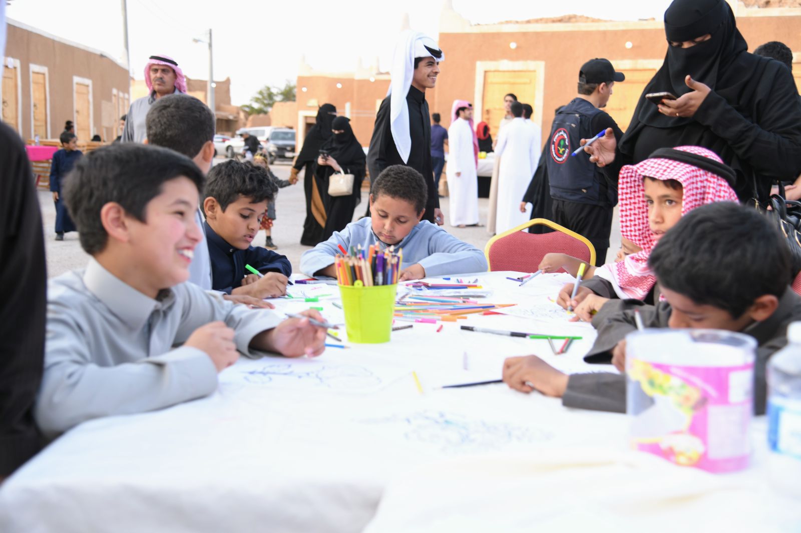 بعد ذلك قام الوفد بأخذ جولة حول اركان المهرجان ومنها ركن أم ماجد للحرف والحرفيين وتعريفنا بحرفة صناعة "السدو"، واطلعوا على نماذج من المتاحف المصغرة والدكاكين القديمة التي تمتاز بها المنطقة قديماً،
