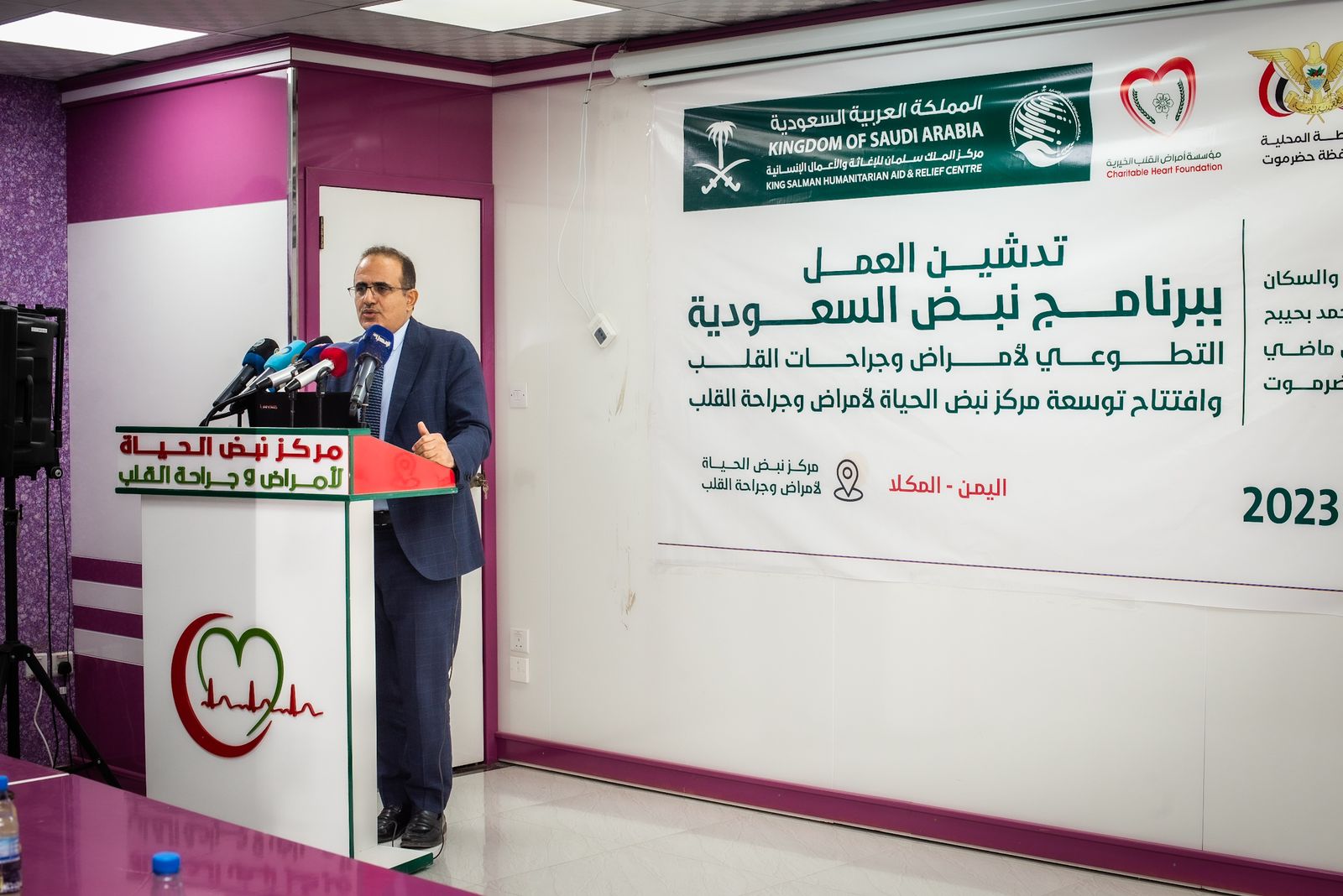 وجرى كذلك افتتاح توسعة مركز نبض الحياة لأمراض وجراحة القلب بالمكلا، والذي سيساهم بمضاعفة عدد العمليات يوميًا، ليستوعب إجراء أكثر من 6 عمليات قلب، و50 عملية قسطرة في اليوم الواحد.