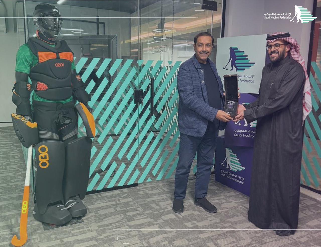 وبالختام، قدّم م. محمد المنديل درعًا تقديريًا لرئيس الإتحاد الدولي للهوكي، تثميناً لجهوده في نمو ودعم رياضة هوكي الميدان دولياً، وتقديرًا لزيارته الكريمة للمملكة العربية السعودية