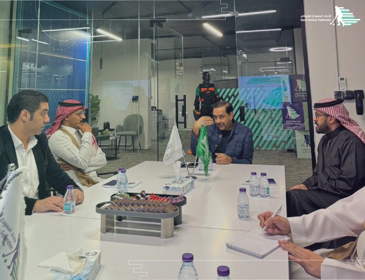 أجتمع رئيس مجلس إدارة الإتحاد السعودي للهوكي المهندس محمد المنديل برفقة الأستاذ عبدالإله الميمون بالمدير التنفيذي للاتحاد بالأستاذ داتو طياب إكرام رئيس الإتحاد الدولي للهوكي، وذلك بمقر الاتحاد بالرياض ، حيث تمت مناقشة جميع جوانب التعزيز والمعرفة لرياضة هوكي الميدان في سبيل تطوير هذه الرياضة.