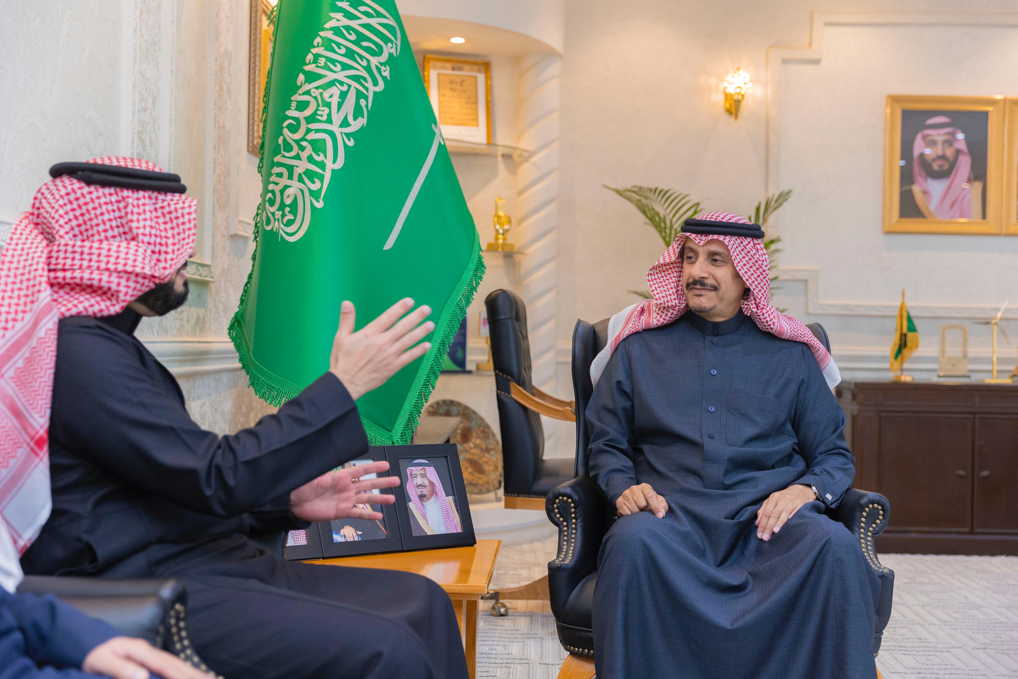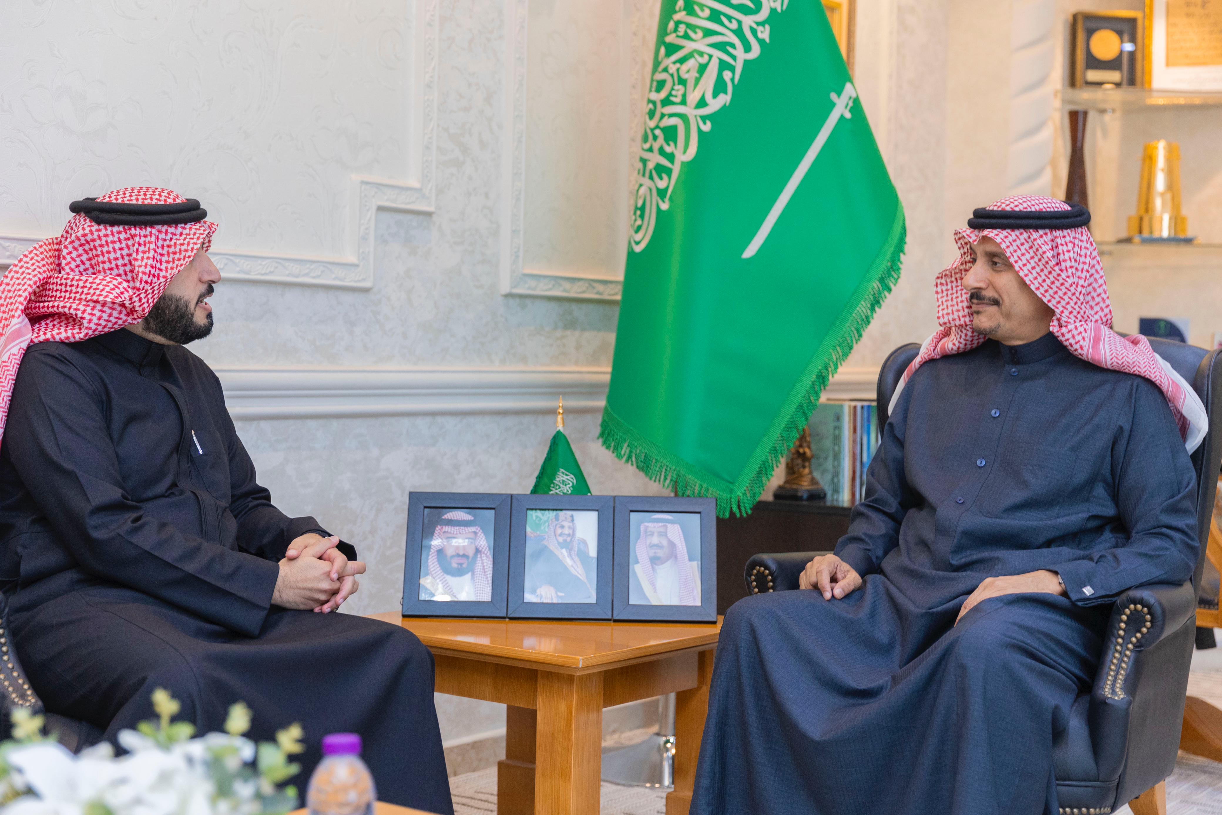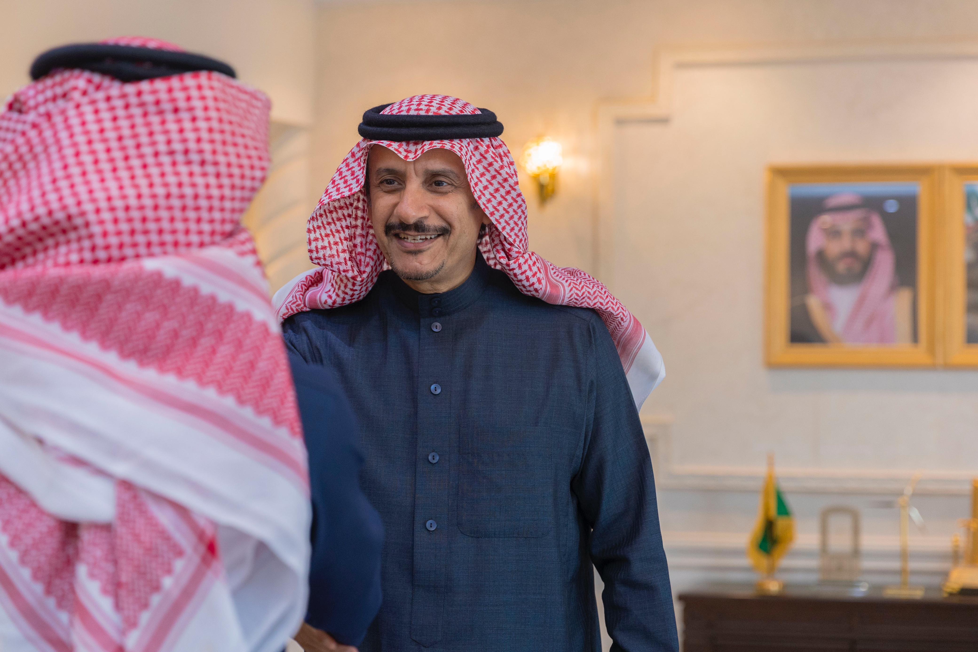 استقبل صاحب السمو الأمير عبدالرحمن بن عبدالله بن فيصل محافظ حفرالباطن، في مكتبه،الدكتور خالد الهويدي رئيس نادي الباطن وعضو مجلس الادارة عوض العنزي.