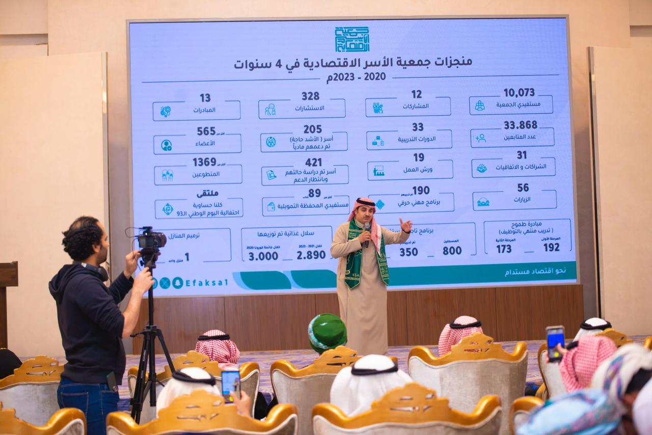 من جهته، قدم المدير التنفيذي المكلف لجمعية الأسر الاقتصادية الأستاذ مشبب بن محمد القحطاني، عرضا عن الجمعية والإنجازات التي حققتها في الخمس السنوات الماضية لخدمة الأسر الاقتصادية وتمكينها، حيث بلغ عدد مستفيدي الجمعية من الأسر أكثر من 10 آلاف أسرة، وبلغ عدد الشراكات والاتفاقيات 31 اتفاقية وشراكة،