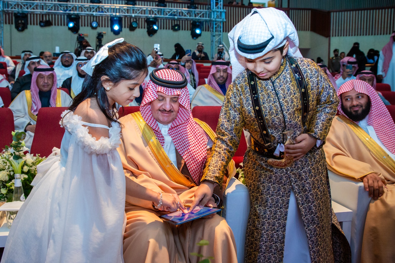 هذا وكرم سموه في نهاية الاحتفال الأبناء المتفوقين البالغ عددهم ٢٣ متفوق و ٤٥ متفوقة، وتكريم ١٠ أرامل أمهات مثاليات، والرعاة والداعمين ، وقدم رئيس مجلس ادارة جمعية ايتام الجبيل درعاً تذكارياً لسمو أمير المنطقة الشرقية لرعايته ودعمه لأبنائه في جمعية ايتام الجبيل نيابة عن اعضاء الجمعية .