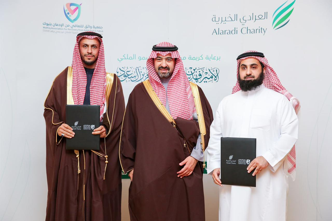 تحت رعاية صاحب السمو الملكي الأمير فهد بن سلطان بن عبدالعزيز أمير منطقة تبوك ،شهد صاحب السمو الملكي الأمير خالد بن سعود بن عبدالله الفيصل بن عبدالعزيز نائب أمير منطقة تبوك، بالإمارة اليوم, توقيع اتفاقية شراكة مجتمعية بين جمعية واثق للتعافي من الإدمان، وأوقاف العرادي الخيرية، بحضور رئيس مجلس إدارة جمعية واثق للتعافي من الإدمان بالمنطقة بدر بن محمد العطوي و المدير التنفيذي لأوقاف العرادي الخيرية إبراهيم بن عبدالله صالح العبدالكريم .