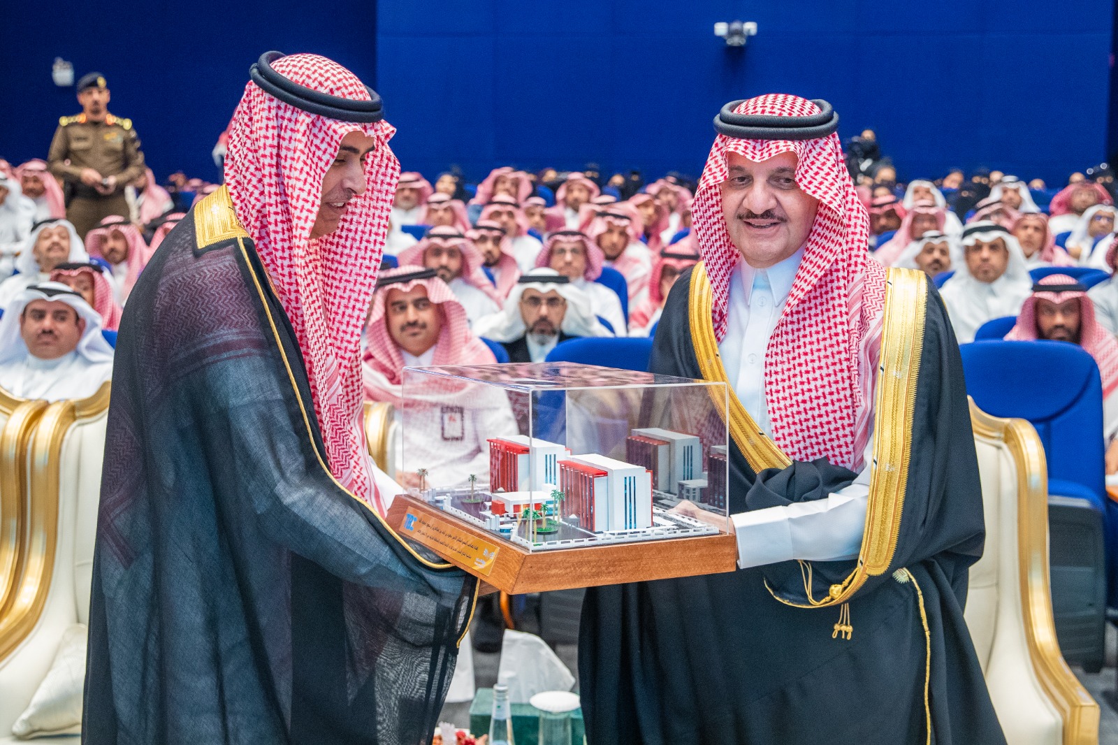 وشهد سمو أمير المنطقة عرضاً أدائياً قدمه مجموعة من طلاب وطالبات المنطقة الشرقية وعرضاً مرئياً عن المشروعات التعليمية الحديثة في المنطقة الشرقية.