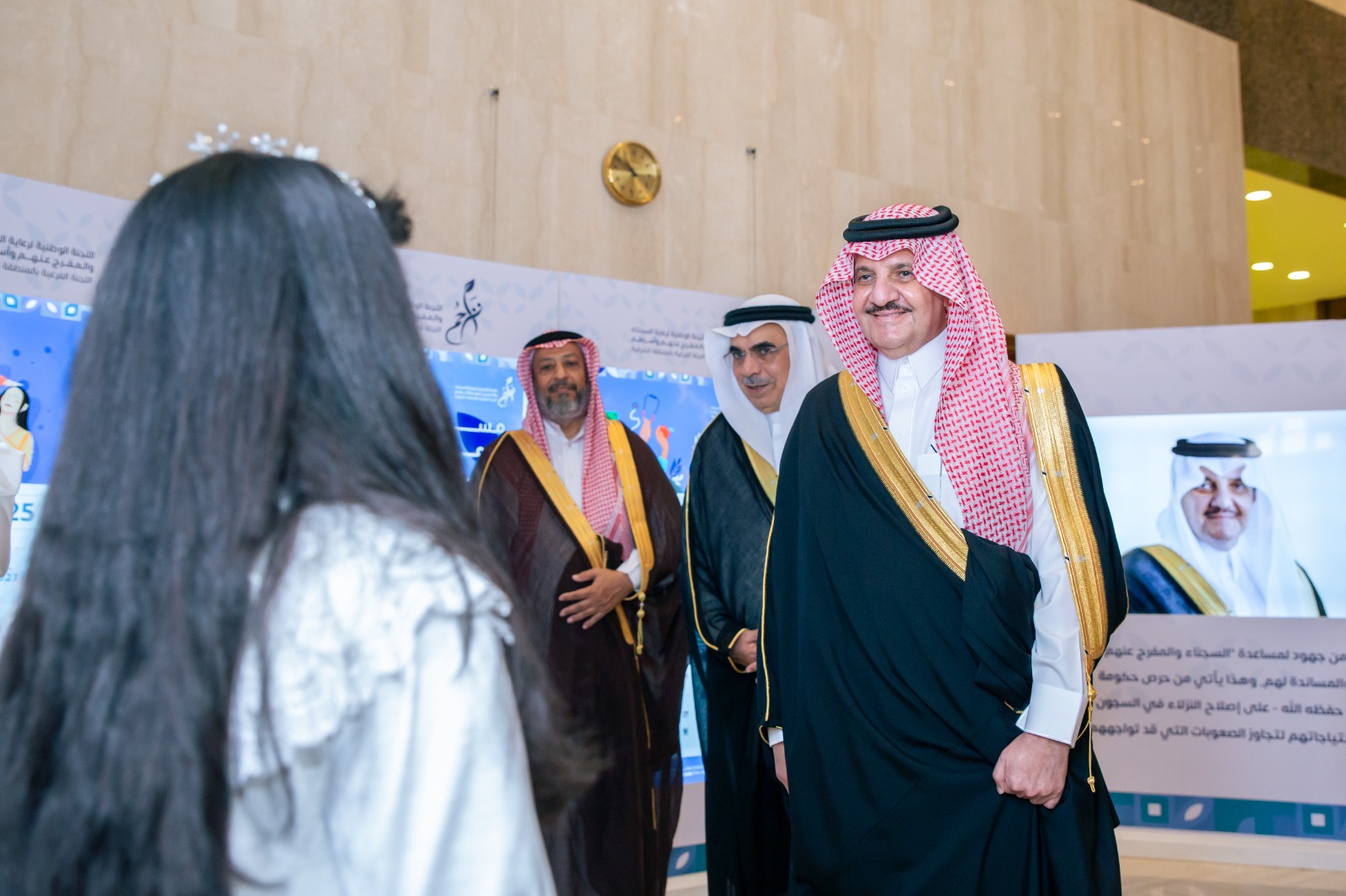 واطلع سموه على المعرض الخاص ببرامج وإنجازات اللجنة، والذي اشتمل على جهود اللجنة وإنجازاتها خلال العام الماضي ، ومنها حصول اللجنة على نسبة (100%) في التوطين، وتكريم (117) طالباً وطالبة من أبناء النزلاء المتفوقين، وامتلاك (21) أسرة للمنازل بالشراكة مع الإسكان التنموي، وتوظيف (51) مستفيد في القطاع الخاص، وإلحاق (40) فتاة في إحدى الأكاديميات التعليمية في التخصصات المهنية المتناسبة مع متطلبات سوق العمل، بالإضافة إلى تسيير رحلات الحج والعمرة لأسر النزلاء، والترافع عن مستفيدي اللجنة مجاناً.
