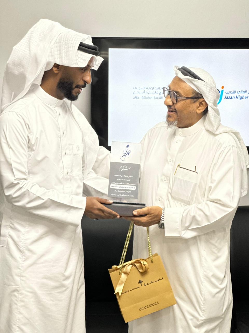 رعى سعادة رئيس اللجنة الوطنية لرعاية أسر السجناء والمفرج عنهم وأسرهم تراحم بمنطقة جازان المهندس /محمد بن يحيى عجيبي يوم الثلاثاء 1445/08/24 هـ تكريم الموظفين المتعاونين في اللجنة , وذلك بمقر اللجنة في حي الشاطئ بجازان .