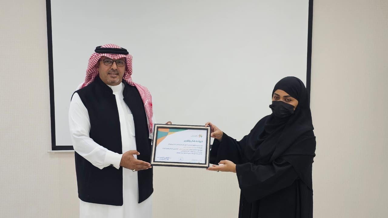 وفي الختام تم تقديم الشكر الجزيل للمحاضرة الاستاذة موزة آل ساري من قبل مدير المركز محمد الزهراني نظير جهودها وماقدمته من معلومات مثرية خلال المحاضرة سائلين المولى عز وجل لها التوفيق والسداد.