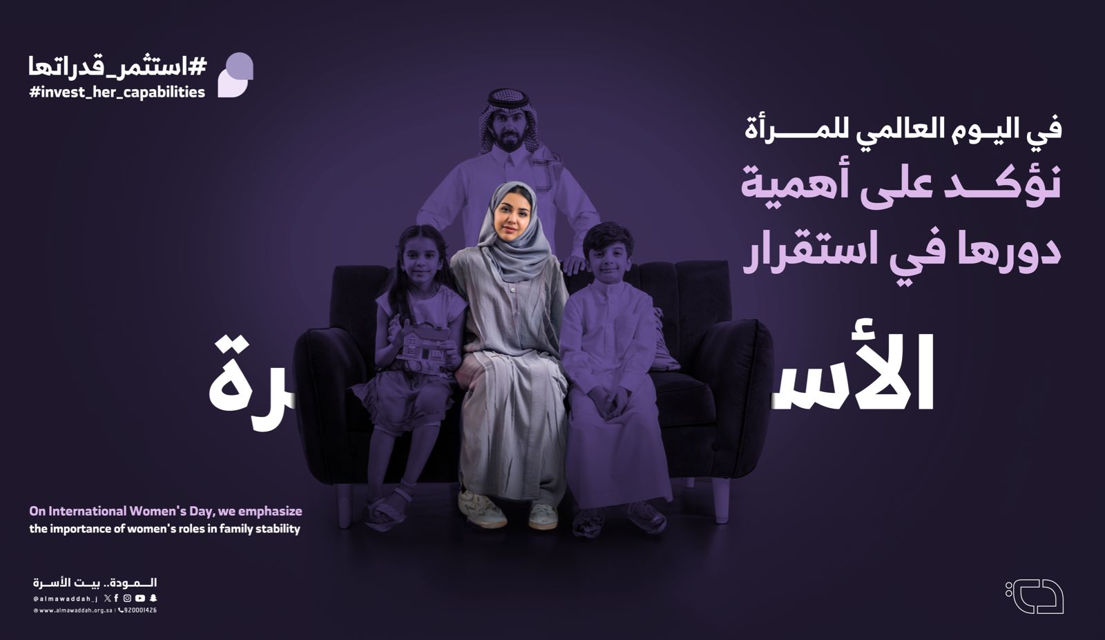ضمن جهود جمعية المودة المستمرة في دعم وتمكين المرأة، أطلقت المودةبمناسبة اليوم العالمي للمرأة حملة تحت شعار "استثمر قدراتها" والذي يهدف إلى تعزيز استثمار قدرات المرأة لتمكينها بشكل فعال.