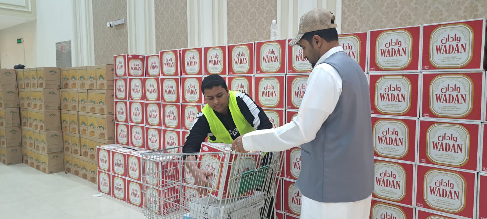 تمر، ماء ، رز الشعلان 10 كيلو، كرتون زيت، سكر 10 كيلو، كرتون شعرية، 6 علي شوربة، شدة طحين كويتي، كرتون فيمتو ودان كاستر (عدد 2 علبة)، كرتون معجون طماط، كرتون معكرونة، ملح خشن ، تفانى في تجهيزها وتوزيعها 61 متطوع بعدد اجمالي للساعات التطوعية في يومين بلغ 556 ساعة تطوعية وتواصل الجمعية اليوم الأحد استكمال التوزيع لعدد من الأسر حسب الخطة المرسومة.
