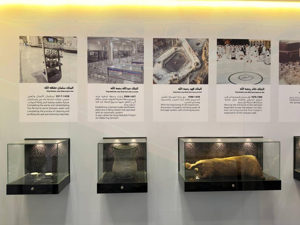 وأول ما يصل إليه الزائر الكريم يتجول في معرض زمزم ويحظى فيه بفرصة للاطلاع على معلومات متعددة حول تاريخ وأهمية هذا الماء المبارك، كما يتم تقديم شرح مفصل عن كيفية تقديمه للحجاج والمعتمرين في الحرم المكي قديما وحديثا ويشمل المعرض عروضًا مرئية وسمعية بالإضافة إلى عرض فيلما وثائقيا تحت اسم "زمزم الماء المبارك"، بالإضافة إلى عرض مجموعة من الصور والأدوات المستخدمة في الحرمين على مر العصور لتقديم هذا الماء المبارك.