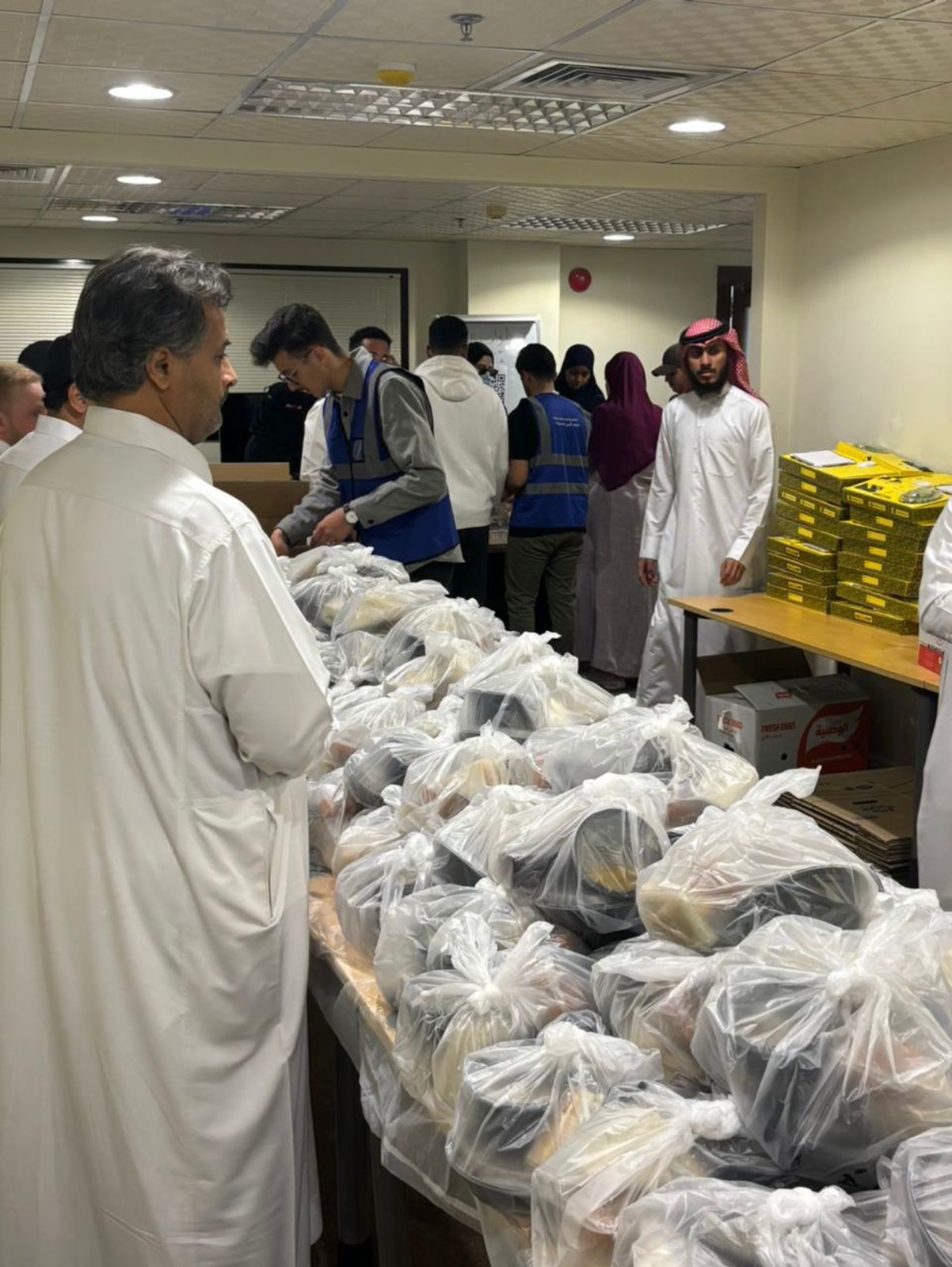 وأشار إلى تطوع أكثر من ٤٠ شاب وشابة في توزيع الوجبات على المستفيدين.بمعدل ٥ساعات تطوعية يوميه لكل متطوع ومتطوعه بما تجاوز ١٠٠٠ ساعه تطوعية في الأيام الخمسة الأولى