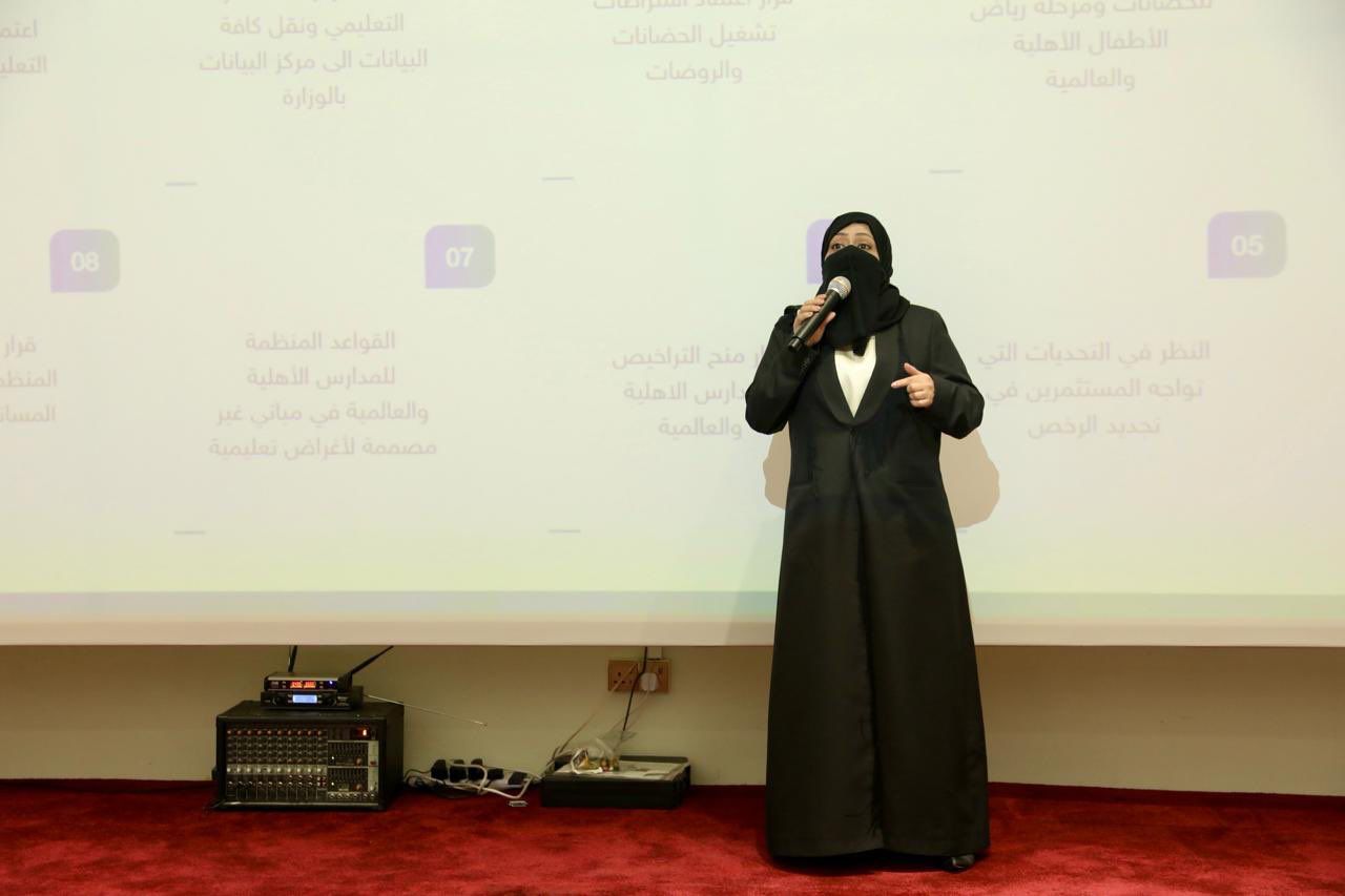وفي محاور اللقاء، قالت مدير مكتب التعليم الخاص عفاف بنت عبدالكريم الدغيفق، "لم يكن اختيار اسم عنوان هذا اللقاء عشوائيًا بل جاء من ما لمسناه من توجهات سامية من القيادة الرشيدة حفظها الله، وتشجيعهم لقطاع التعليم الخاص، وتنفيذًا منا لمتطلبات الاستراتيجية الوطنية لتطبيع التعليم ومتطلباتها وأيضا التعزيز المستمر للقيادة والحوكمة في جهود قطاع التعليم وتجويده والتوسع به".