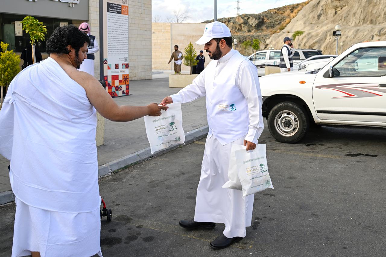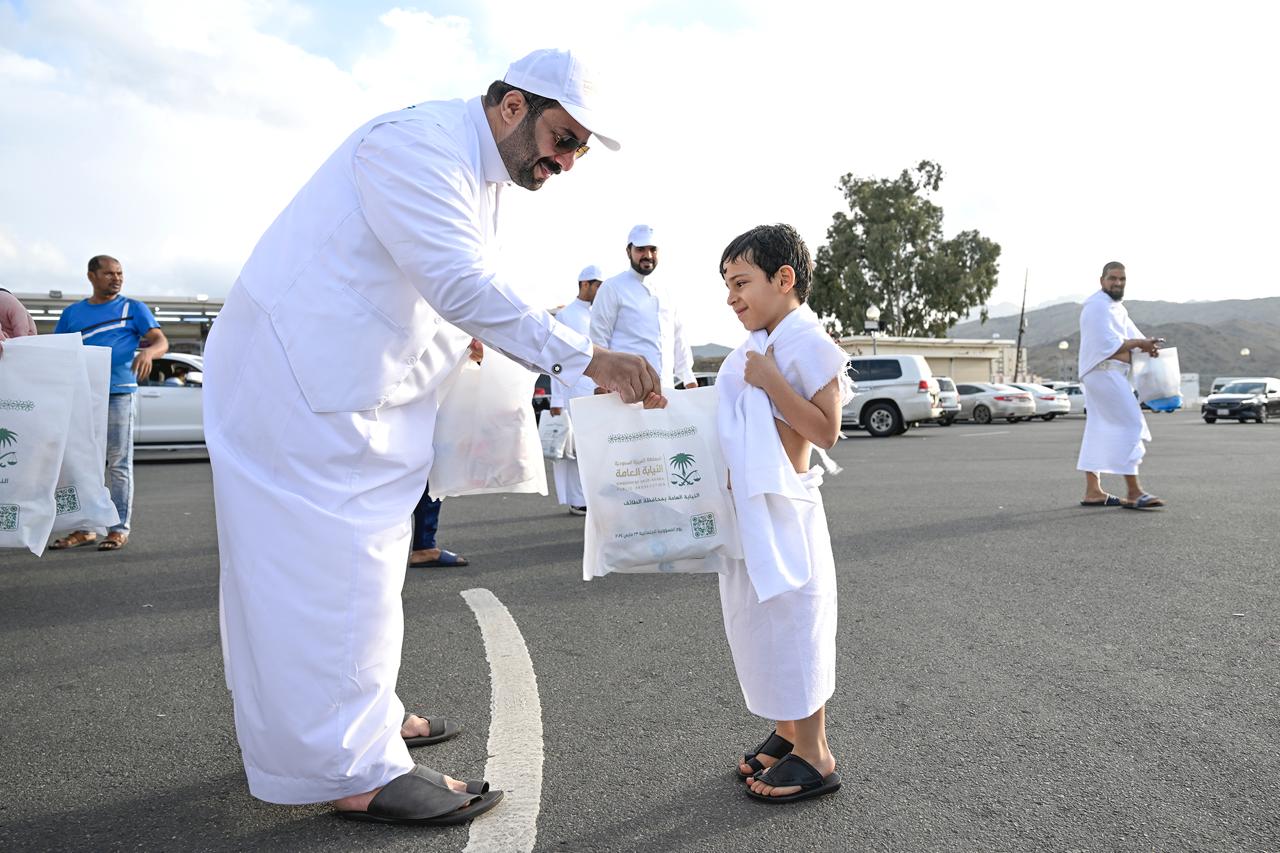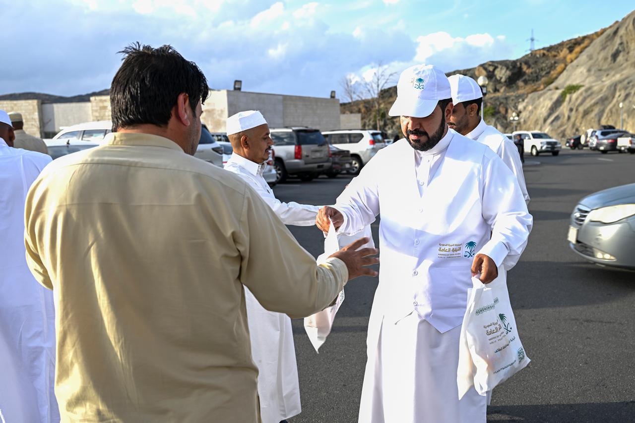 بتوزيع وجبات إفطار متكاملة و صحية بميقات وادي محرم وبالمدخل الغربي للهدا على الزوار والمعتمرين وسالكي الطريق.