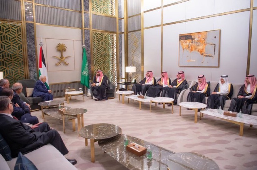 اجتمع صاحب السمو الملكي الأمير محمد بن سلمان بن عبدالعزيز آل سعود ولي العهد رئيس مجلس الوزراء في جدة اليوم مع فخامة الرئيس محمود عباس رئيس دولة فلسطين.