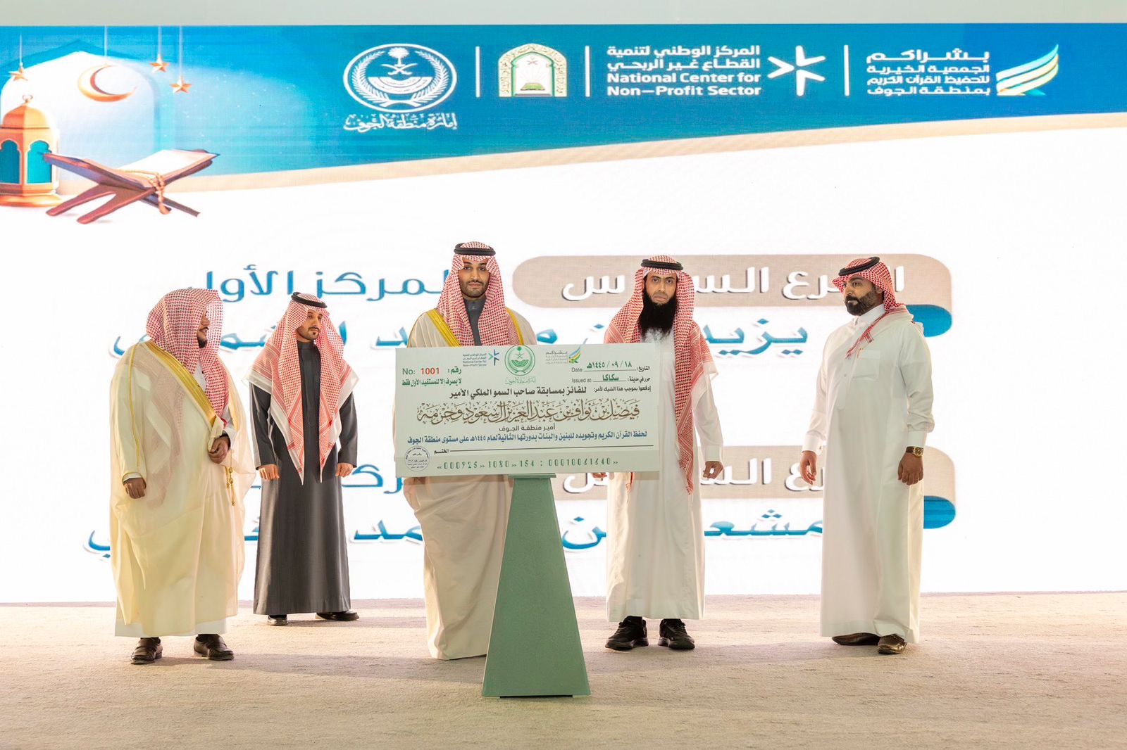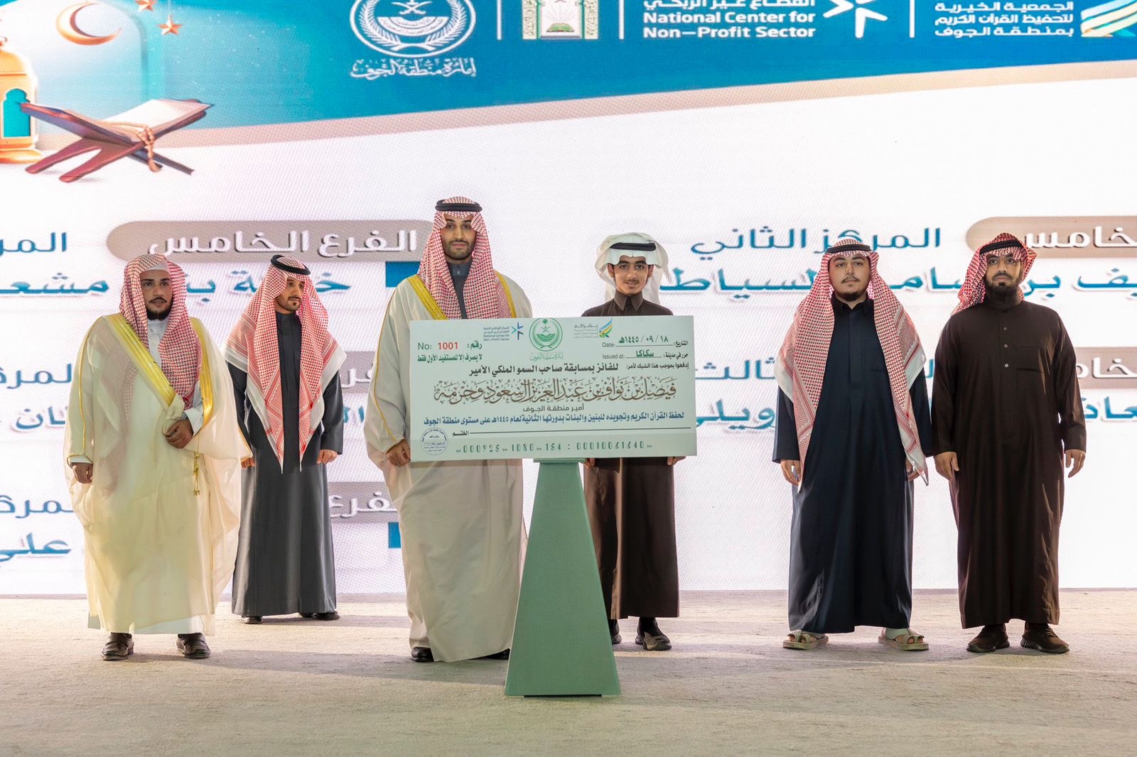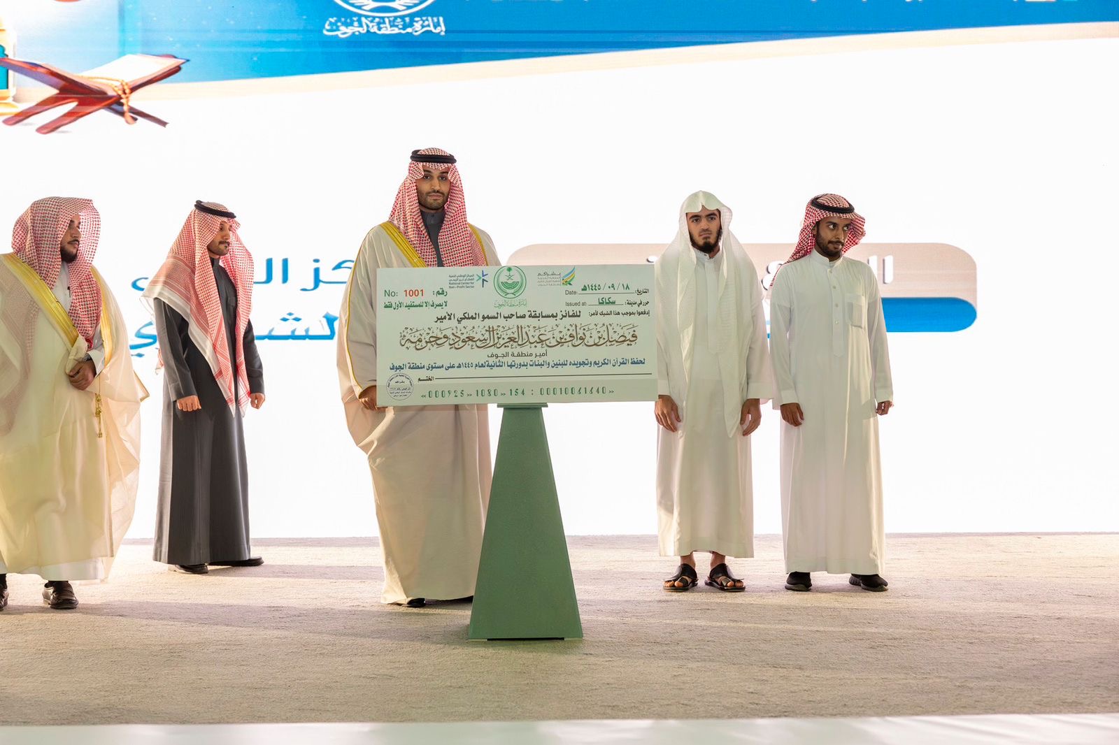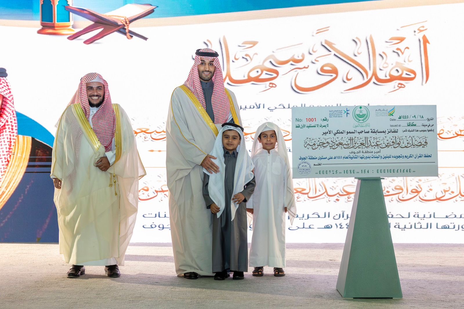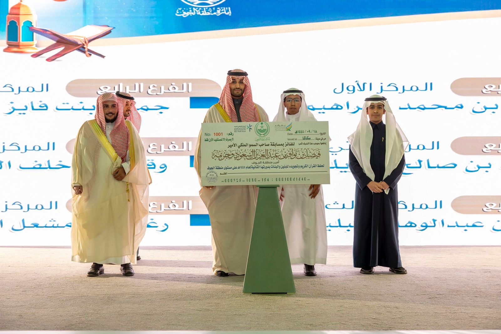 برعاية صاحب السموّ الملكيّ الأمير فيصل بن نواف بن عبدالعزيز أمير منطقة الجوف، ونيابة عن سموّه، كرّم صاحب السموّ الملكيّ الأمير متعب بن مشعل بن بدر بن سعود بن عبدالعزيز نائب أمير منطقة الجوف، الفائزين بمسابقة أمير منطقة الجوف وحرمه، الرمضانية لحفظ القرآن الكريم وتجويده للبنين والبنات، في دورتها الثانية لعام ١٤٤٥ هـ على مستوى منطقة الجوف.