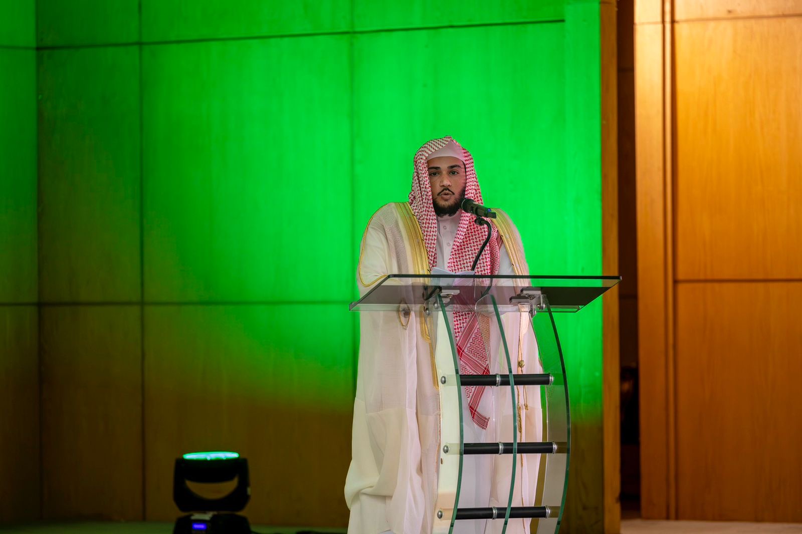 وبدأ الحفل بتلاوة آيات من القرآن الكريم, ثم كلمة رئيس مجلس إدارة الجمعية محمد الهشال شكر فيها سموّ أمير المنطقة على رعايته ودعمه وتشجيعه حفظة كتاب الله، ودعمه المستمر للجمعية في مسيرتها القرآنية، سائلًا الله أن يجعل ذلك في ميزان حسنات سموه الكريم.