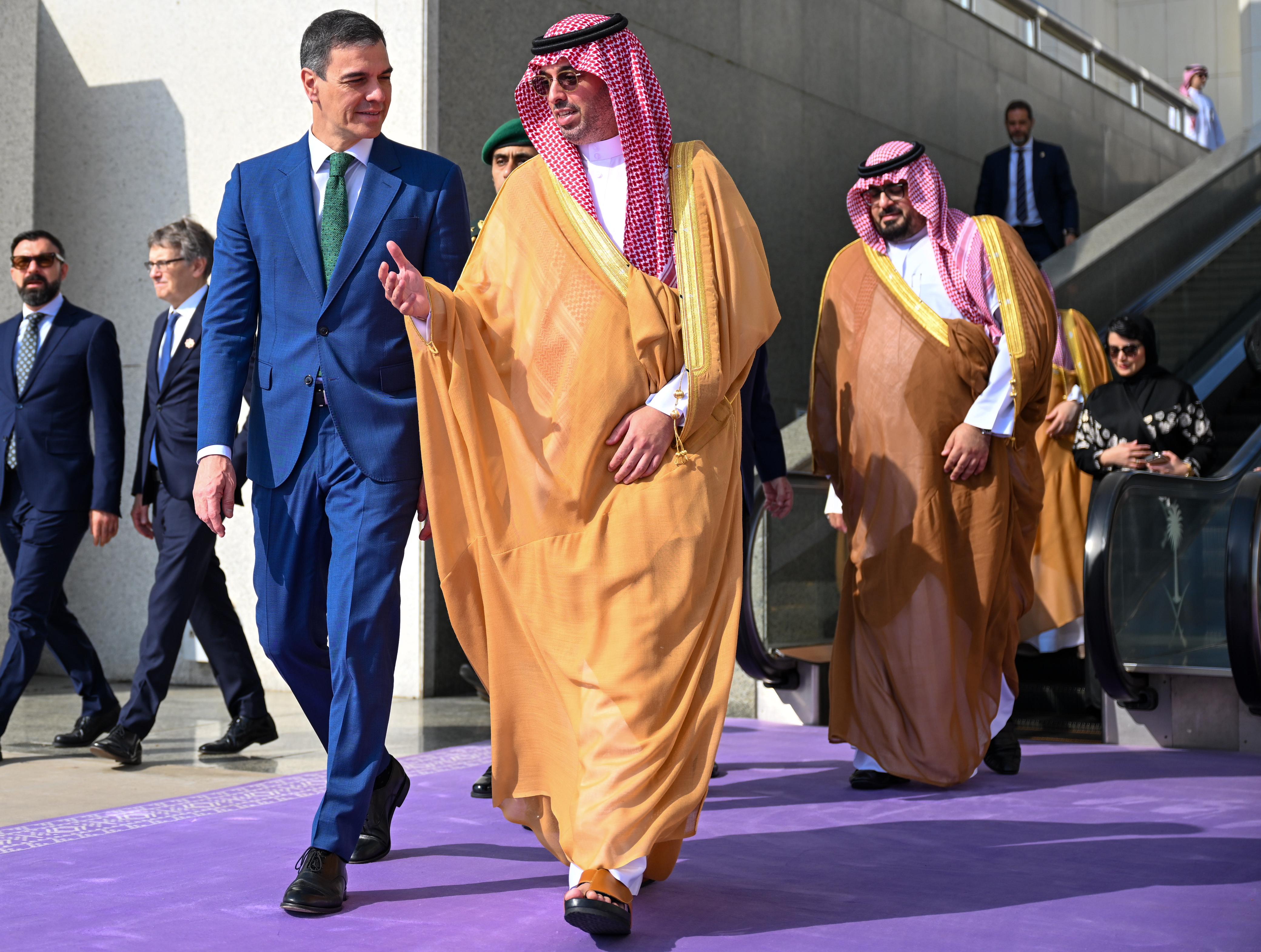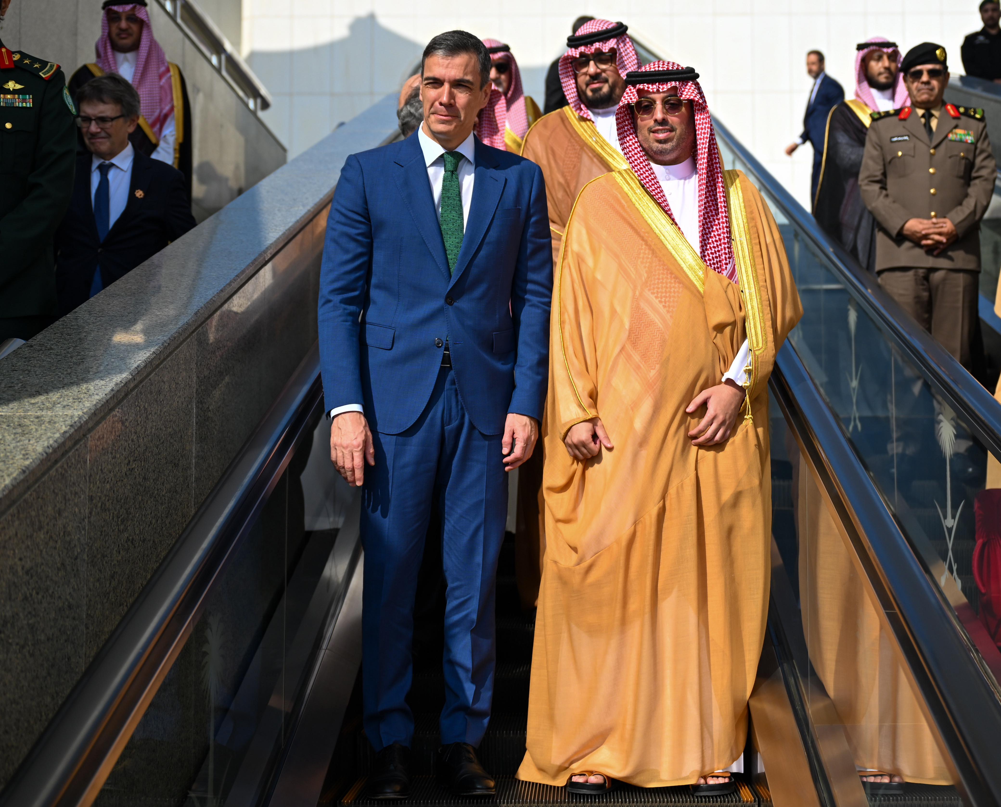 غادر جدة اليوم، بيدرو سانشيز، رئيس وزراء مملكة إسبانيا، وكان في وداع دولته بمطار الملك عبدالعزيز الدولي، صاحب السمو الأمير سعود بن عبدالله بن جلوي محافظ جدة، ومعالي وزير الاقتصاد والتخطيط الأستاذ فيصل بن فاضل الإبراهيم (وزير مرافق)، وصاحبة السمو الأميرة هيفاء بنت عبدالعزيز بن عياف آل مقرن سفيرة خادم الحرمين الشريفين لدى مملكة إسبانيا، وسفير مملكة إسبانيا لدى المملكة خورخي إيبيا، ومعالي أمين محافظة جدة الأستاذ صالح التركي، ومدير شرطة جدة اللواء سليمان بن عمر الطويرب، ومدير المراسم الملكية بمنطقة مكة المكرمة أحمد عبدالله بن ظافر.