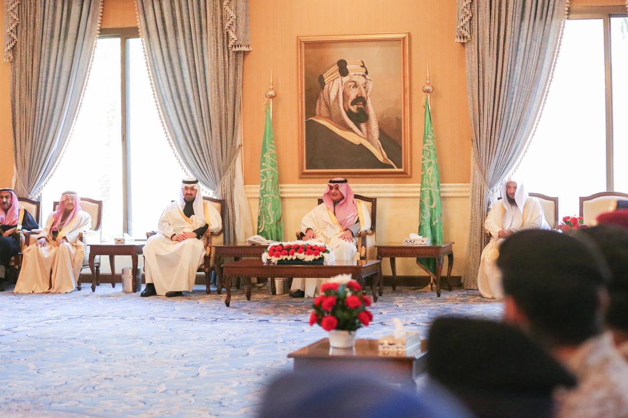 استقبل صاحب السمو الملكي الأمير فهد بن سلطان بن عبدالعزيز أمير منطقة تبوك، بحضور صاحب السمو الملكي الأمير خالد بن سعود بن عبدالله الفيصل بن عبدالعزيز نائب أمير منطقة تبوك، بالقصر الحكومي اليوم, رؤساء المحاكم ومشايخ القبائل ومديري الإدارات الحكومية من مدنيين وعسكريين وجمع من أهالي المنطقة ، الذين قدموا للسلام على سموه وتهنئته بعيد الفطر المبارك، وبادلهم سموه التهنئة بهذه المناسبة السعيدة.