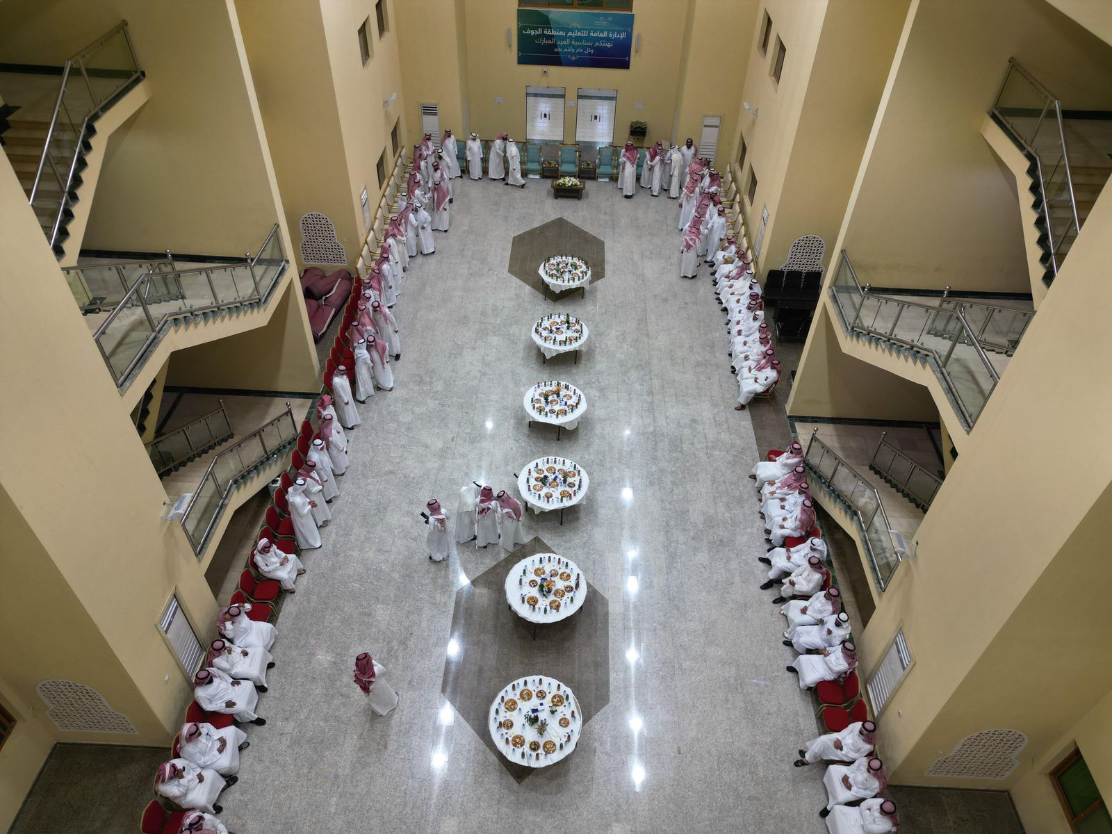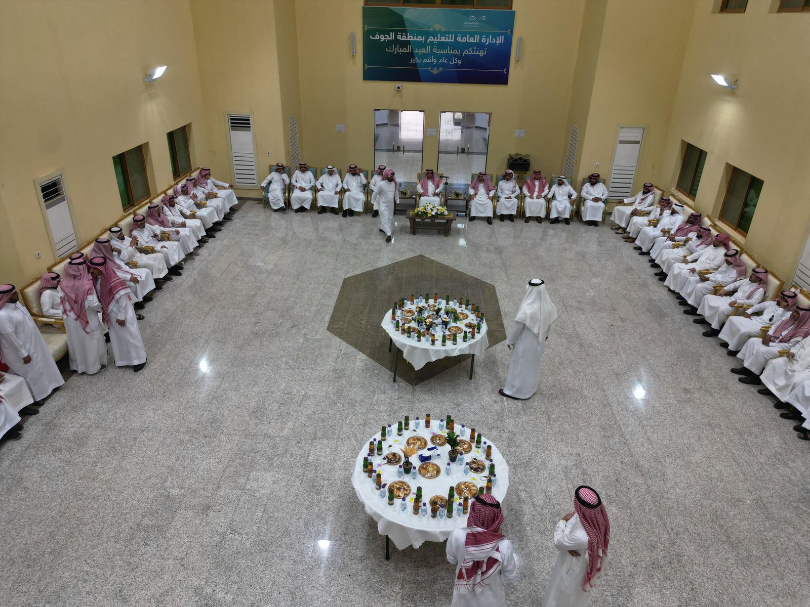 حيث التقى المدير العام للتعليم بمنطقة الجوف الأستاذ محمد بن علي القحطاني، مع المساعدين ومديري الإدارات والأقسام والموظفين وتبادلوا التهاني في جو سادته الألفة والمودة، وتناول الجميع المرطبات والحلويات في حفل بهيج.