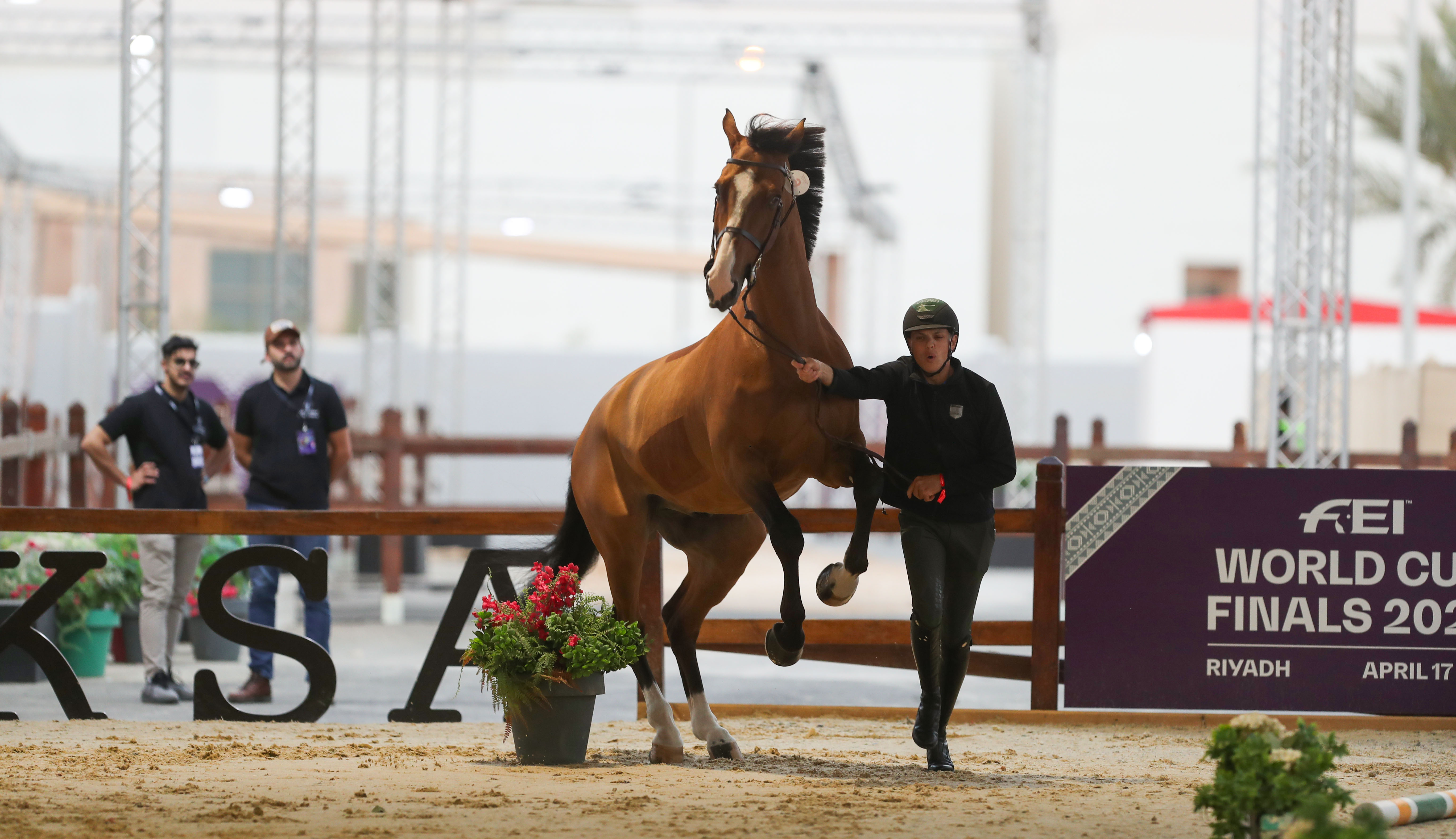 اجراء عدد من الفرسان المشاركين في بطولة كأس العالم لقفز الحواجز والترويض 2024 من بينهم المصنفين الستة الأوائل على مستوى العالم في قفز الحواجز، اليوم الاثنين أولى تدريباتهم على "أرينا" البطولة الرئسية، وذلك قبل يومين من انطلاق البطولة المقرره على أرض مركز الرياض الدولي للمؤتمرات والمعارض.