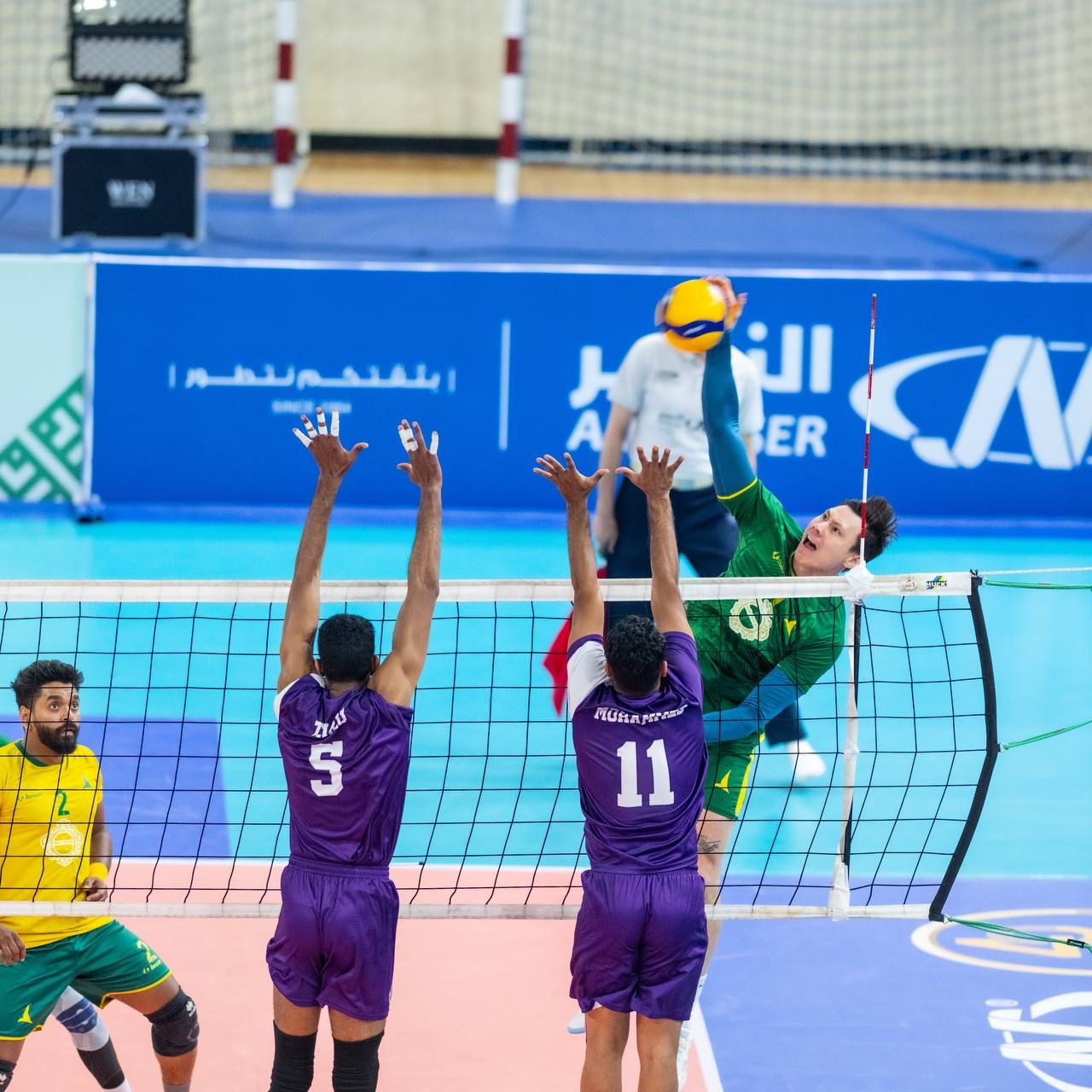 رافعاً رصيده الى 6 نقاط في صدارة الترتيب ومستفيداً من فوز الاتحاد على الهلال بثلاثة اشواط مقابل شوط جاءت نتائج الاشواط 25/19 ، 25/27 25/19 ، 25/19