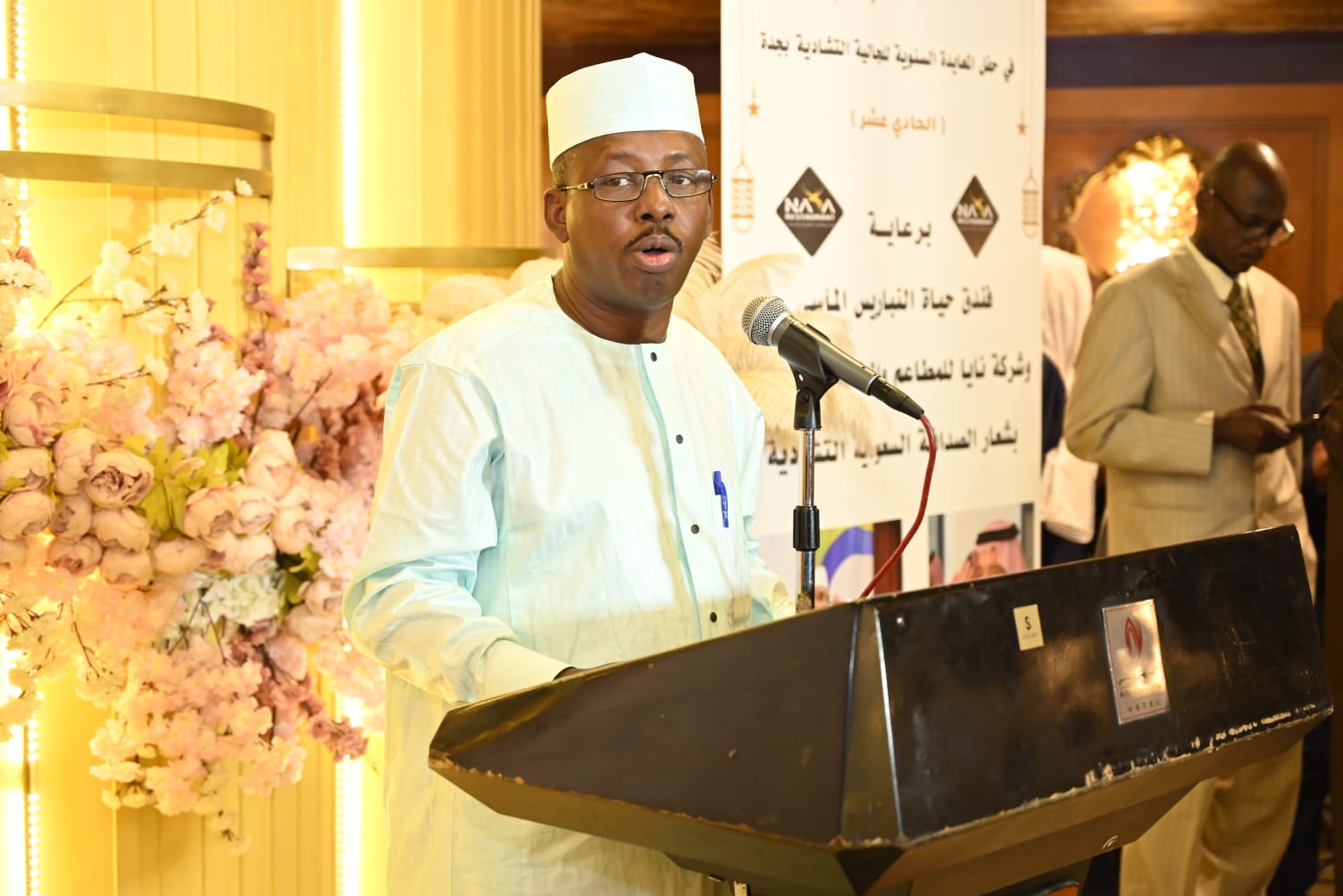 ثم ألقى رئيس اللجنة المنظمة للحفل السنوي، الأستاذ إدريس سليمان صالح، كلمة رحب فيها بالحضور، وتقدم بالتهنئة لمقام خادم الحرمين الشريفين وولي عهده الأمين - حفظهم الله - بمناسبة عيد الفطر المبارك، كما هنأ فخامة الرئيس الجنرال محمد إدريس ديبي اتنو والحضور والشعبين التشادي والسعودي بهذه المناسبة السعيدة.