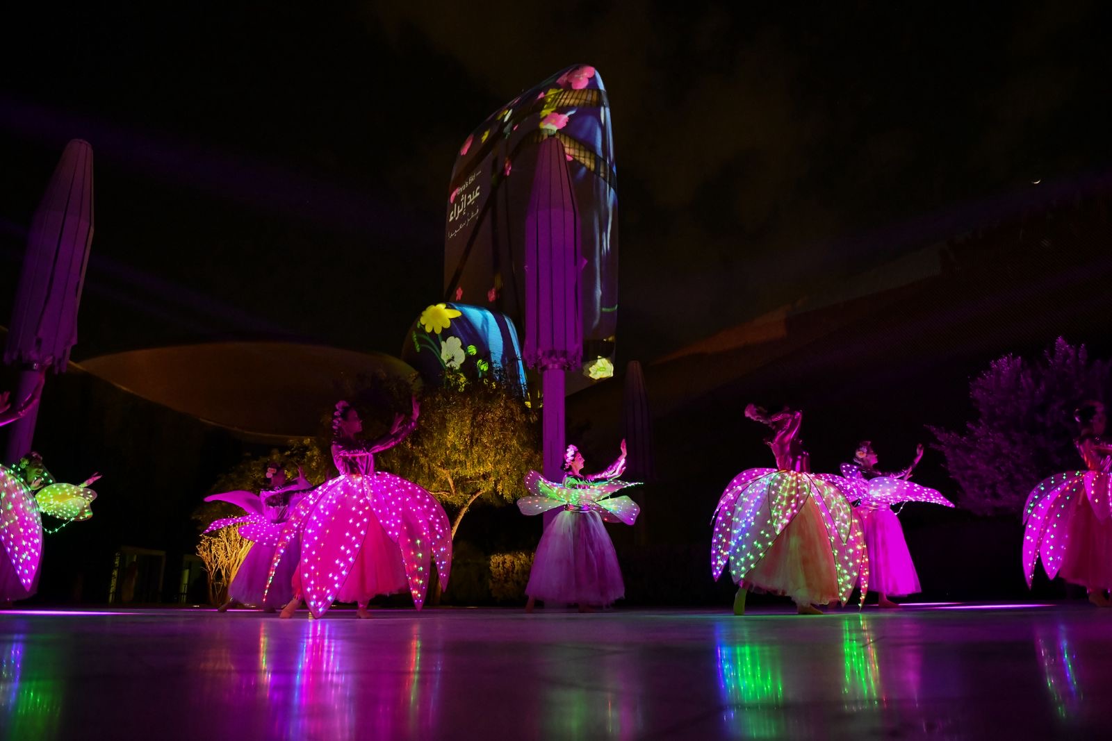 وعلى الصعيد ذاته، ازدانت حدائق إثراء وكافة مرافقه بالورود فما أن يلبث الزائر من حضور من فعالية مميزة إلا وانتقل لفعالية أخرى أكثر تميزًا؛ فمن بوابة المسرح توافدت عائلات لحضور كورال العيد الذي استعرض مجموعة من الأغاني المبهجة المليئة بعبارات التهنئة بالعيد، حيث صنعت أيقونة تحاكي العديد من الأنماط الغنائية من مختلف الفترات الزمنية ووسط شغف الحضور قدّمت الفرقة الموسيقية وصلات غنائية استمرت نحو ساعة متواصلة كانت بمثابة بطاقة عبور إلى ذاكرة العيد التي تحمل العديد من المواقف والسعادة على حد تعبير العديد منهم، واستمرارًا لذلك شارك مئاتالزوّار بورشة عمل حول كيفية صناعة حلوى العيد بأنامل أطفالهم وذلك على أيدي مختصين في صناعة وتزيين حلوى العيد، وأما لورشة الألعاب النارية الآمنة نمط مختلف عبر أدوات إبداعية ابتكارية، أدارها مدربون زرعوا فرحة العيد بألعاب بعيدة عنالمخاطر.