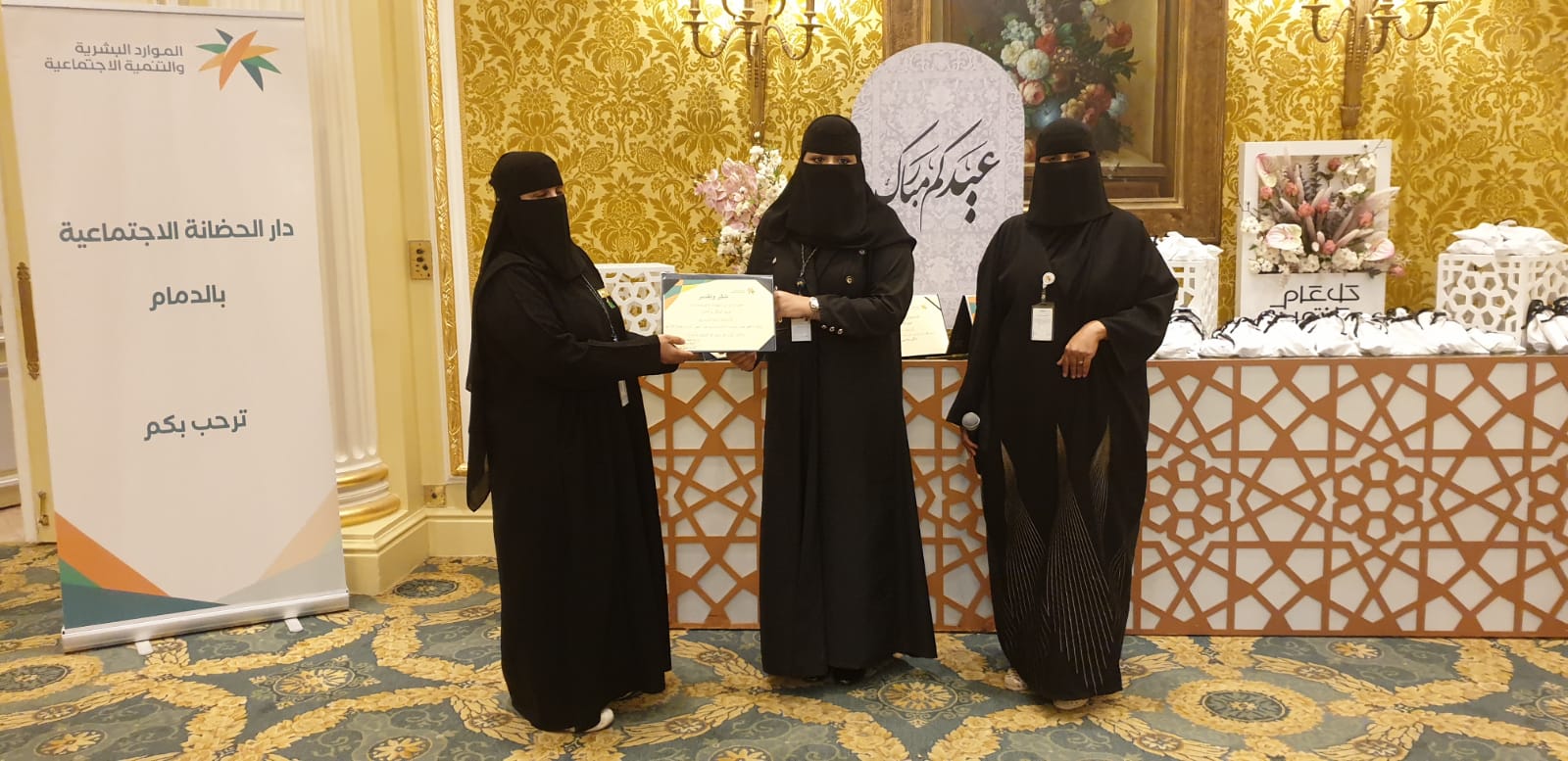 أقامت دار الحضانة الاجتماعية بالدمام يوم أمس الأربعاء ٨ / ١٠ / ١٤٤٥ مأدبة عشاء بمناسبة عيد الفطر المبارك وذلك باستضافة كريمة من فندق مريديان الخبر بإشراف مديرة الدار أمل بنت حسين عوض بحضور فتيات ومنسوبات الدار والأسر الكافلة وبدعم من رئيسة قسم الشراكة المجتمعية بفرع الوزارة سمية بنت علي الدوسري ، وبتنظيم وتنسيق قسم البرامج والأنشطة وقد تم خلالها توزيع هدايا العيد التي كانت بدعم كريم من السيدة مزون الأشقر كما كرمت مديرة الدار جميع الداعمين والرعاة والمنظمين وذلك بتقديم شهادات الشكر والتقدير واثنت على جهودهم وعطاءهم .