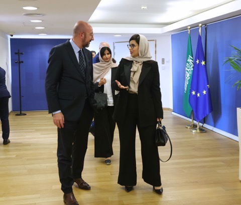 بدورها أشادت السفيرة الجديع، بتميز العلاقات بين المملكة والاتحاد الأوروبي، وأنها في تطور مستمر في جميع الميادين وعلى الأصعدة كافة.