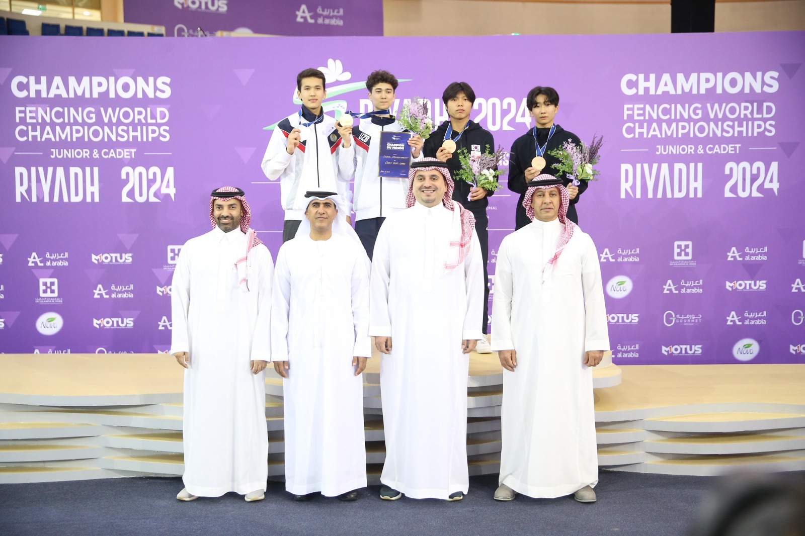توج صاحب السمو الأمير فهد بن جلوي بن مساعد، نائب رئيس اللجنة الأولمبية والبارالمبية السعودية، الأوزبكي ساردار عبدالكريم بالميدالية الذهبية لسلاح السيبر (فردي) تحت 17 عام، في بطولة العالم للمبارزة للناشئين والشباب المقامة حاليا في صالة أرينا بجامعة الملك سعود، وذلك بحضور سالم بن سلطان القاسمي رئيس الاتحادين الاسيوي والعربي للمبارزة.