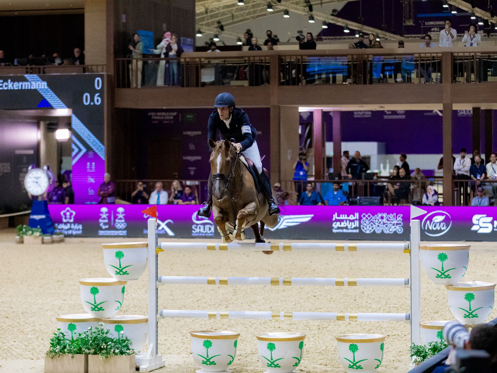 توج صاحب السمو الأمير فهد بن جلوي بن عبد العزيز نائب رئيس اللجنة الأولمبية والبارالمبية، بحضور البلجيكي إنغمار دي فوس رئيس الاتحاد الدولي للفروسية، الفارس السويدي هنريك فون إيكيرمان بلقب كاس العالم لقفز الحواجز على أرض مركز الرياض الدولي للمؤتمرات والمعارض في العاصمة الرياض، وذلك في اليوم الختامي من بطولة كأس العالم لقفز الحواجز والترويض 2024.