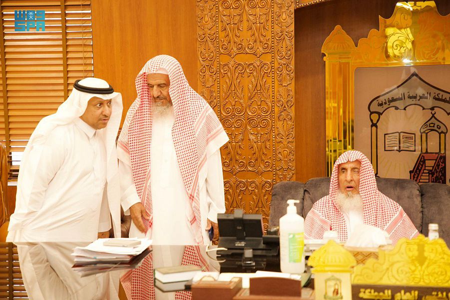 استقبل سماحة مفتي عام المملكة رئيس هيئة كبار العلماء والرئيس العام للبحوث العلمية والإفتاء الشيخ عبدالعزيز بن عبدالله آل الشيخ في مكتبه بالرئاسة اليوم المهنئين بعيد الفطر المبارك من منسوبي الرئاسة أصحاب المعالي والفضيلة ومديري الإدارات ورؤساء الأقسام والموظفين.