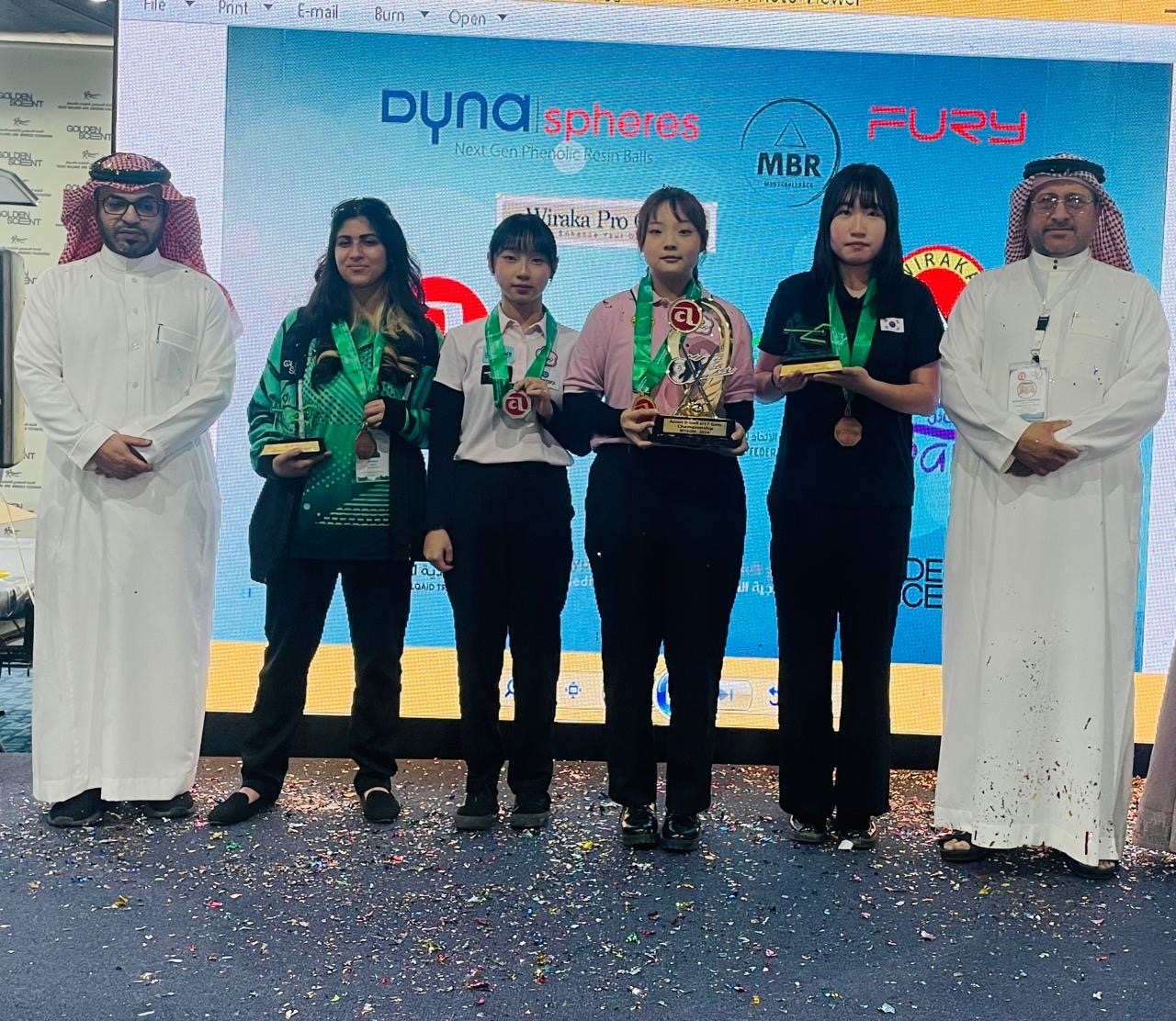 وانتزع لاعبات منتخب تايبيه الذهب والفضة في المنافسات حيث توجت لاعبة تايبيه وينق مينق بذهبية منافسات 9 كرات فتيات بعد فوزها في النهائي على مواطنتها جانق جاجا بنتيجة 2/5 وتوجت لاعبة المنتخب السعودي جود بخاري بالميدالية البرونزية كأول لاعبة سعودية وخليجية وعربية تحصل على ميدالية آسيوية وتوجت لاعبة منتخب كوريا الجنوبية هيو يولم بالمركز الرابع وفي منافسات 9 كرات سيدات توجت لاعبة منتخب تايبيه شو شن بالميدالية الذهبية بعد فوزها في النهائي على مواطنتها وي تيز بنتيجة 3/7 وحصلت لاعبة منتخب كوريا الجنوبية سيو سو على المركز الثالث ولاعبة منتخب اليابان كوهير شيرو على المركز الرابع.