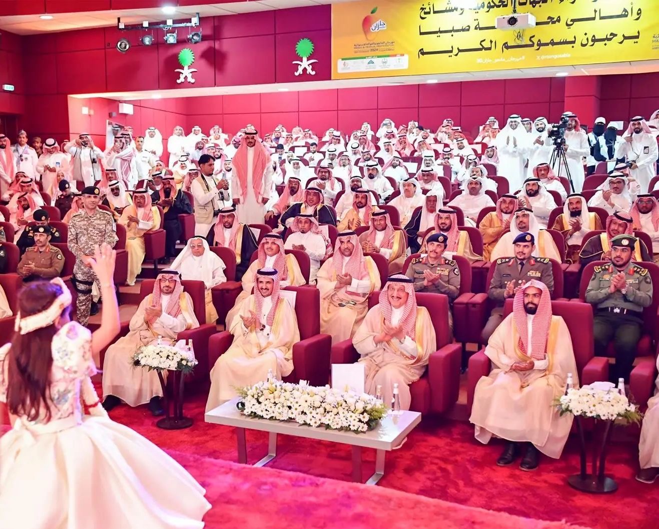 وألقى الشاعر عيسى جرابا قصيدة شعرية بهذه المناسبة، فيما قدم طلاب مدارس تعليم صبيا عرضًا فنيًا بعنوان "صبيا .. رؤية وطن"، وفي ختام الحفل شهد أسمو أمير منطقة جازان توقيع العديد من الاتفاقيات لدعم القطاع الزراعي بالمنطقة، شملت اتفاقية تأمين معمل لتجفيف فاكهة التين والفواكه الاستوائية بين وزارة البيئة والمياه والزراعة والجمعية التعاونية للتسويق الزراعي بجازان، واتفاقية توريد المنتجات المحلية واتفاقية تعاون لتسويق المنتجات الزراعية المحلية بين الجمعية التعاونية للتسويق الزراعي مع شركة أسواق عبدالله العثيم.