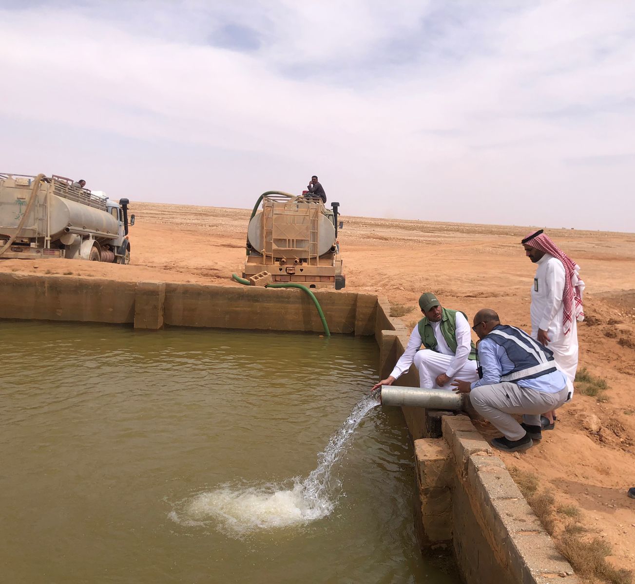 تفقد مدير عام فرع وزارة البيئة والمياه والزراعة بمنطقة الحدود الشمالية المهندس بندر بن صالح الهديه ، اليوم السبت 1445/10/18هـ بئر ومورد طايلة وقعساء بمركز حزم الجلاميد.