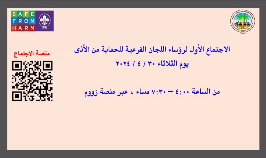 عقدت أمانة جمعية الكشافة العربية السعودية "مفوضية تنمية المراحل ", اليوم، عبر الاتصال المرئي، الاجتماع الأول لرؤساء اللجان الفرعية للحماية من الأذى في قطاعاتها المختلفة بمناطق ومحافظات المملكة، بحضور الأمين العام للجمعية الدكتور عبدالرحمن بن إبراهيم المديرس، الذي القى كلمة في بداية الاجتماع أكد فيها أن السياسة العالمية للحماية من الأذى تساعد وترشد الجمعية في تلبية المعايير الدولية لحماية الفتية والشباب، حيث نبني معًا ونحافظ على بيئة آمنة ودامجة للشباب والمتطوعين عبر الحركة الكشفية، باعتبارها حركة مكرسة لنمو الشباب وتطورهم، وهو الأمر الذي دعا الكشافة العالمية إلى جعل الأولوية لسلامة ورفاهية الفتية والشباب في جميع المناسبات، والأمر الذي يجعل الجمعية تعمل على تعزيز الحماية على المستوى المحلي من خلال تدريب القادة الراشدين والشباب باستمرار.