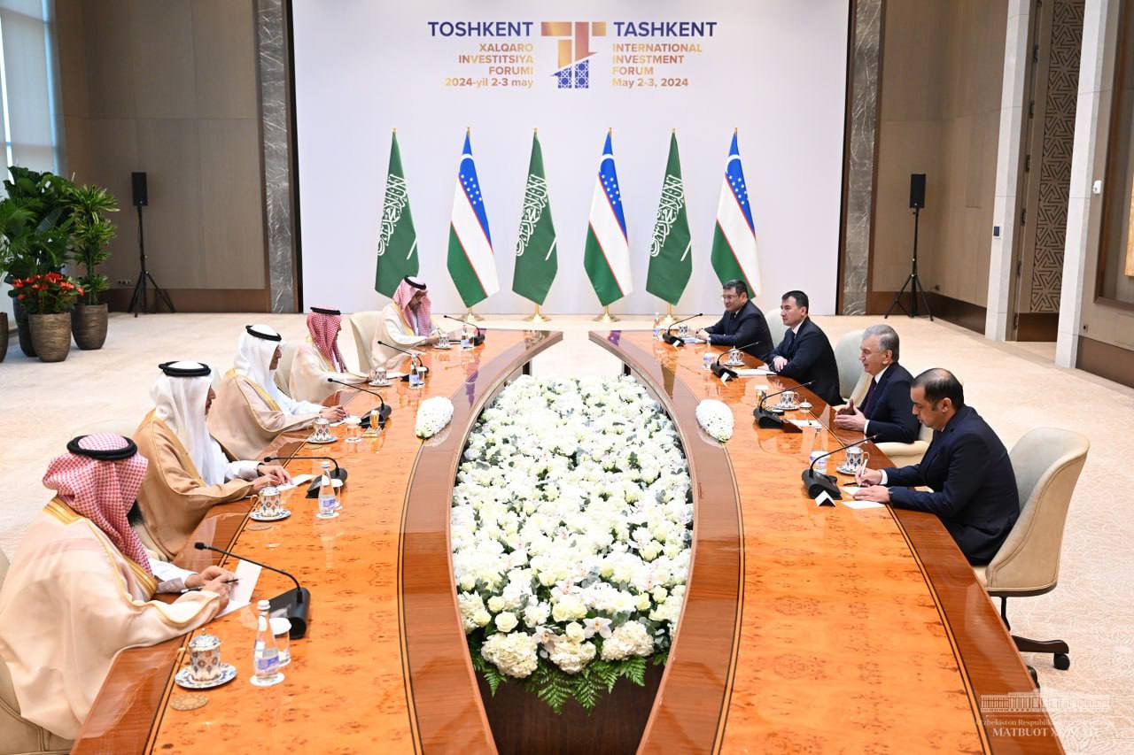 استقبل الرئيس شوكت ميرضيائيف رئيس جمهورية أوزبكستان الوفد السعودي برئاسة وزير الطاقة السعودي صاحب السمو الملكي الأمير عبد العزيز بن سلمان آل سعود الذي يزور جمهورية أوزبكستان للمشاركة في منتدى طشقند الدولي للاستثمار الثالث.