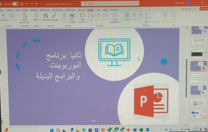 وقدمت المدربة خلال الدورة شرحا وافيا عن "التعامل مع برامج الاوفيس ((Word, Power point ،Excel بكفاءة. والتعرف على أساسيات استخدام الانترنت، والتعرف على الحوسبة السحابية، كما قامت بالتعريف ببرامج الاوفيس والهدف من كل برنامج ومجالات استخدامه، من حيث التفصيل في برنامج الوورد والتعرف على مهام شريط الأدوات مع استخدام بعض الاختصارات والحيل الحاسوبية التي تجعل من العمل أسهل وأيسر ويخرج بصورة احترافية. كذلك التفصيل في برنامج العروض البور بوينت والتعرف على الادوات الخاصة بالعرض والحركة بالتفصيل مع استخدام بعض الاختصارات والحيل الحاسوبية التي تجعل من العمل أسهل وأيسر ويخرج بصورة احترافية، كما تم التعرف على بدائل البرنامج مثل برنامج بريزي وبرنامج كي نوت. وتم التفصيل في برنامج التنظيم اكسيل والتعرف على المهام الخاصة بالتعامل مع الجداول والرسوم البيانية والادوات مع استخدام بعض الاختصارات والحيل الحاسوبية التي تجعل من العمل أسهل وأيسر ويخرج بصورة احترافية. وفي الختام تم الإجابة على جميع الأسئلة المتعلقة بالدورة وشكرت المستفيدات المدربة على عطائها وشكروا جمعية كيان على كل ما تقدمه لهم من دورات وبرامج تجود حياتهم وتزيدهم علما وطالبوا بدورات أخرى مفصلة في هذا المجال.