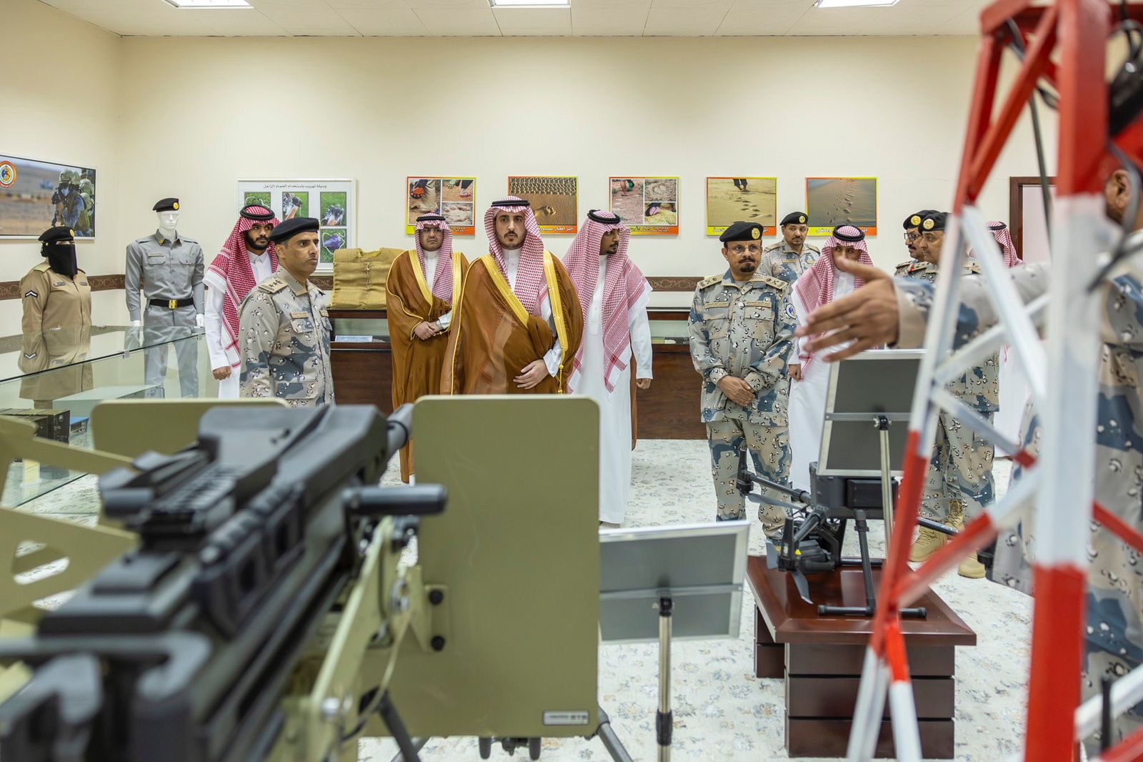 واطّلع سموّه خلال زيارته على معرض قيادة حرس الحدود بالمنطقة بين الحاضر والماضي، والمعرض المصاحب والخاص بعرض الأسلحة الحديثة والأنظمة الحرارية، منوهًا بما يحظى به قطاع حرس الحدود من دعم ورعاية من القيادة الرشيدة – أيدها الله – ومتابعة صاحب السمو الملكي الأمير عبدالعزيز بن سعود بن نايف بن عبدالعزيز وزير الداخلية.