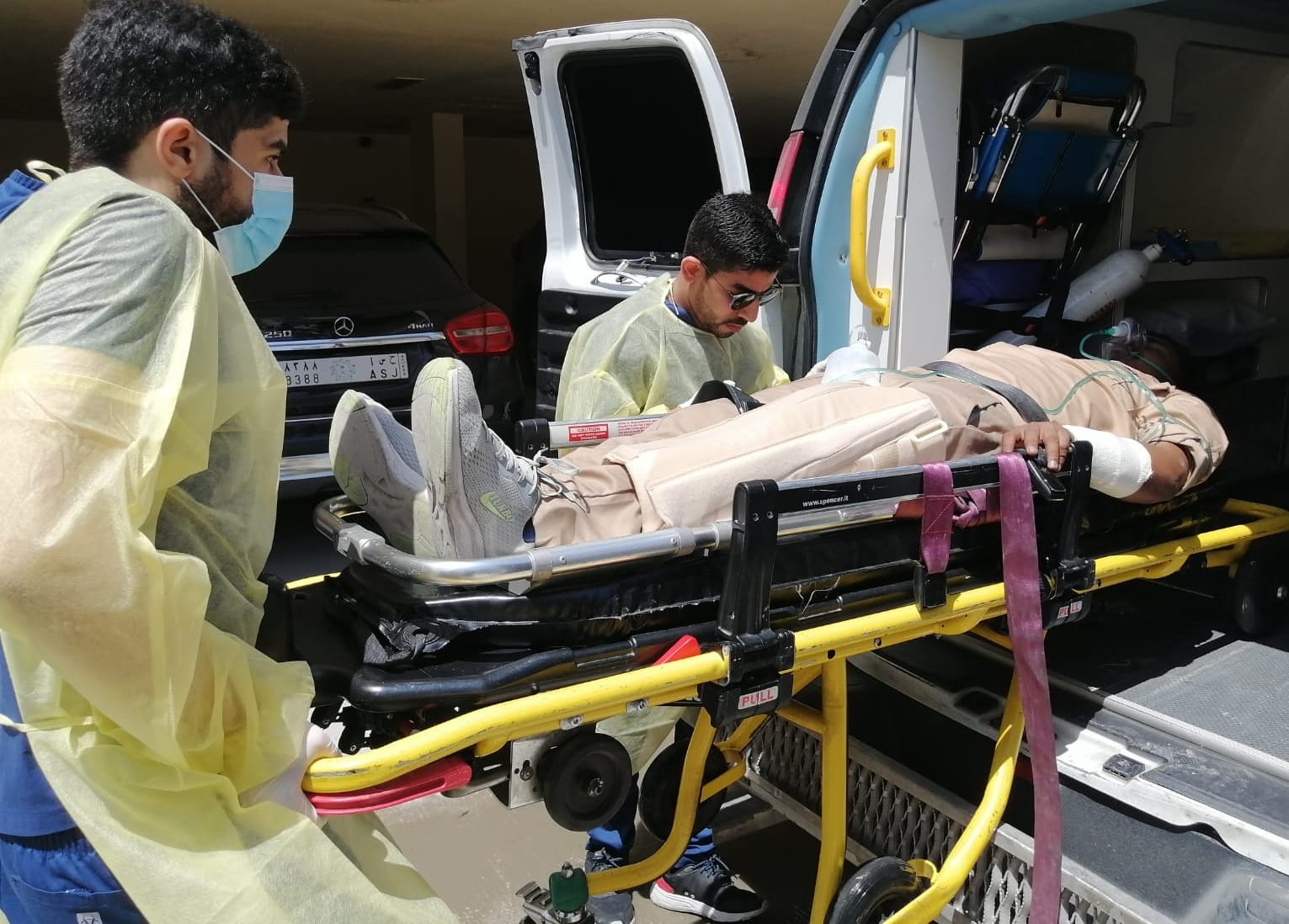 بينما سجلت حالتين على أنهما مستقرتان لطفل يبلغ من العمر 5 سنوات لديه جروح سطيحة وكدمات بسيطة، وأنثى تعاني من آلام بسيطة وكدمات في مناطق متفرقه، توفيت فيه حالتين وفقا للسيناريو إحداهما طفل لديه نزيف شديد في الرأس، وأنثى تم عمل إنعاش قلبي رئوي لها في الموقع ولا توجد استجابة.
