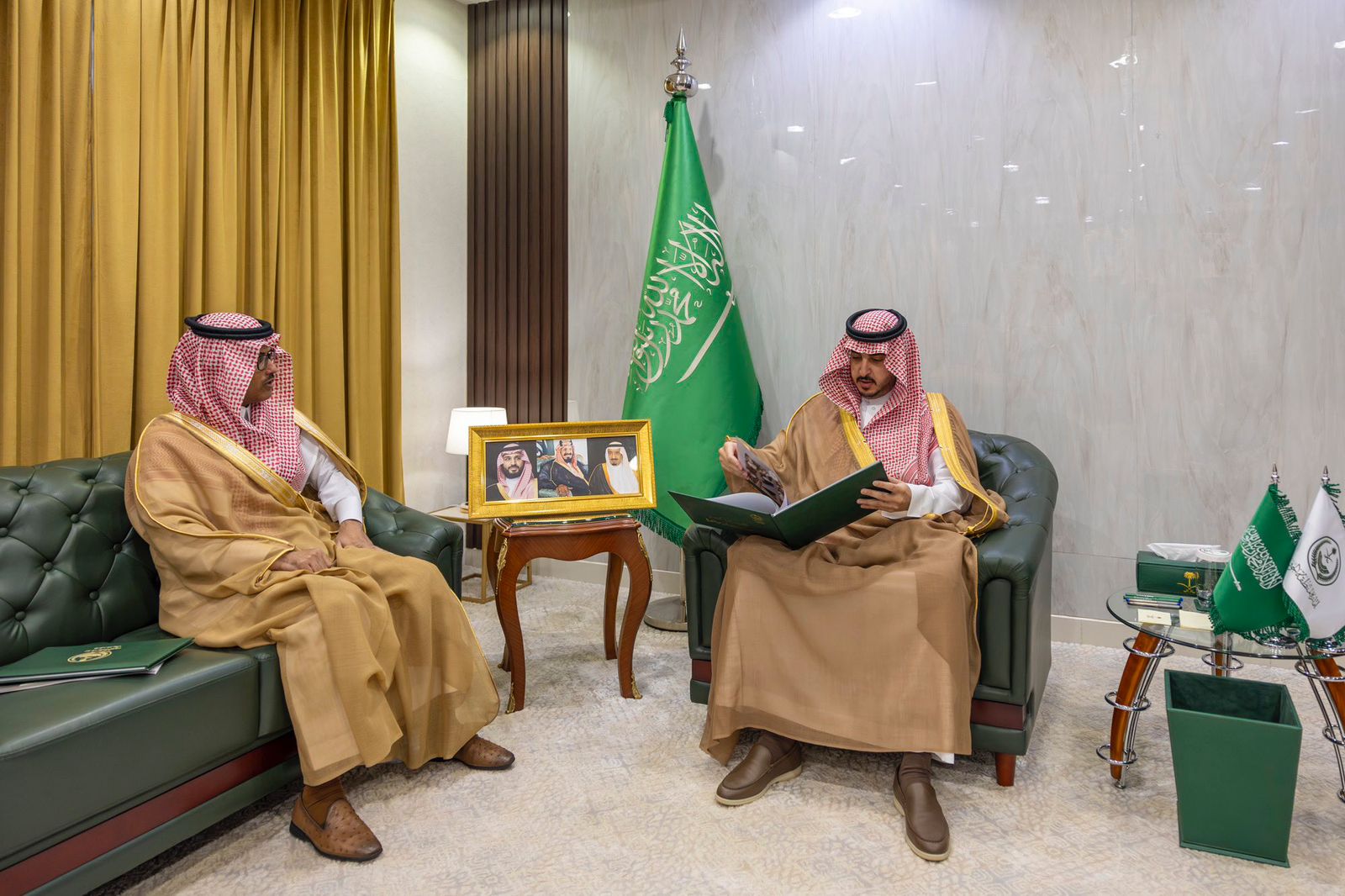 واستهلّ سموّه زيارته في مقرّ المحافظة اليوم، بلقاء محافظ طبرجل نادر غالب العتيبي، الذي قدّم لسموّه نبذة عمّا تضمنه التقريران من منجزات وأعمال.