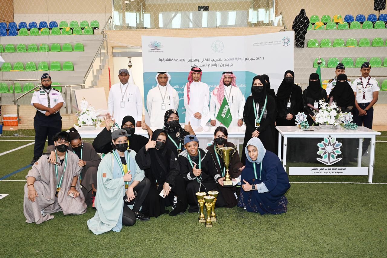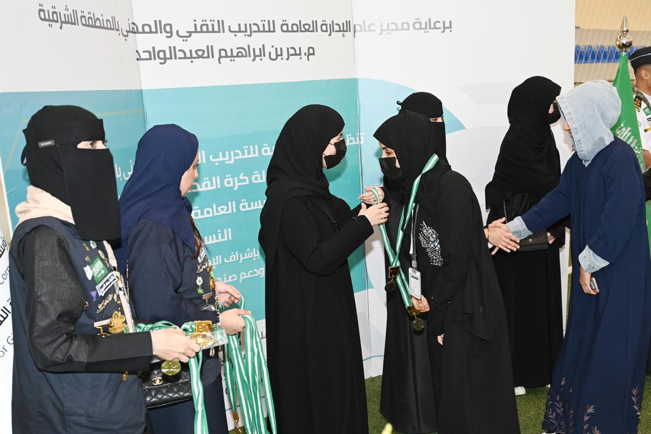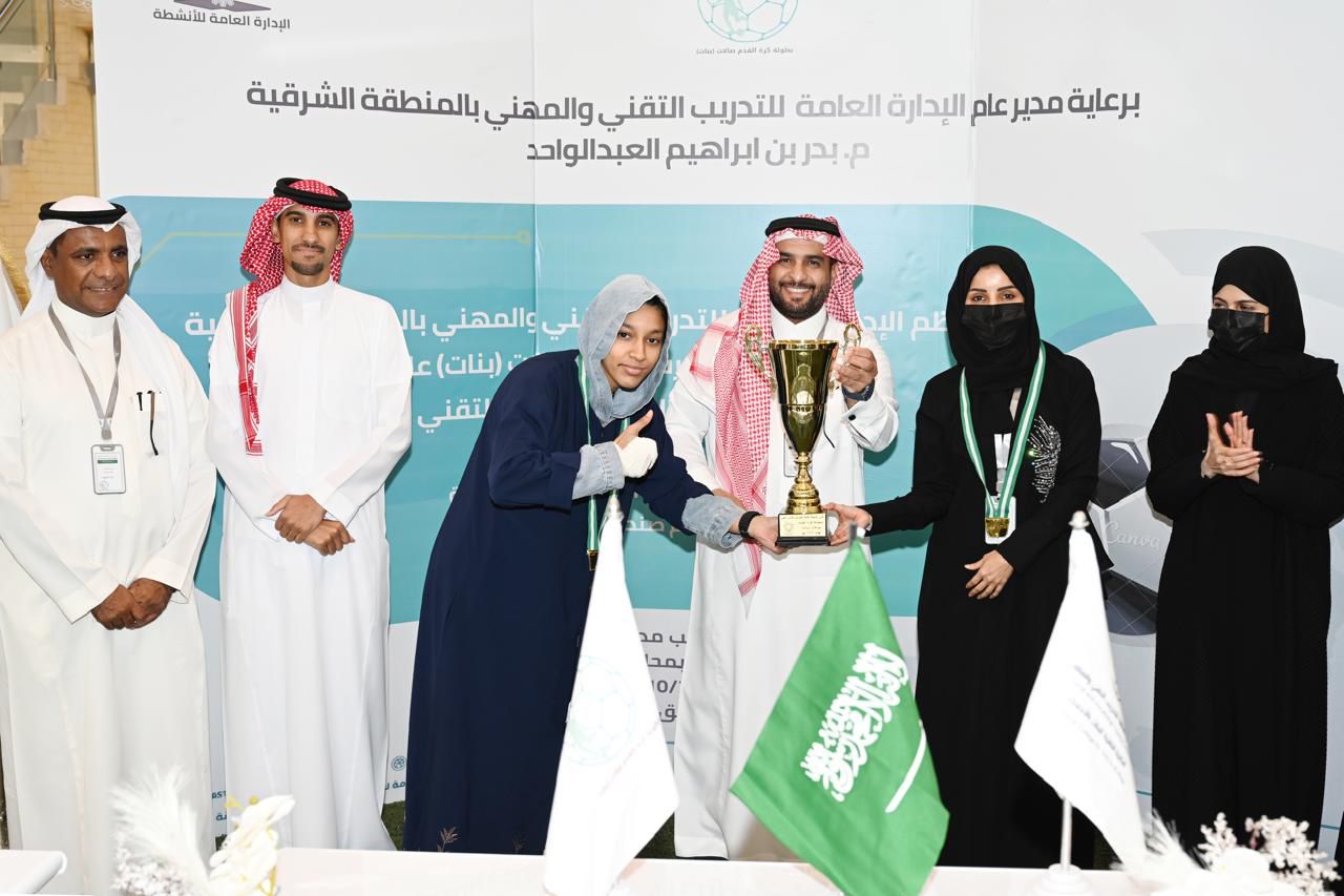 من جانبه أشار مدير عام التدريب التقني والمهني بالمنطقة الشرقية المهندس بدر بن إبراهيم العبدالواحد بأنه تم تسخير جميع الإمكانيات لاستضافة المنطقة الشرقية لهذه البطولة النوعية بمحافظة الأحساء ، والتنسيق مع الجهات ذات العلاقة لإنجاحها وتحقيق غاياتها المتمثلة في تعزيز مفهوم الرياضة والصحة البدنية للوصول إلى مجتمع صحي نشط ، واكتشاف المواهب ، وإذكاء روح التنافس الشريف بين الفرق المشاركة ، وتقوية العلاقات الاجتماعية لعضوات الفريق والمجتمع، وتحمل الضغوطات الجسدية والنفسية ،وفي ختام البطولة تم تكريم الحكمات وشركاء النجاح والإعلام.