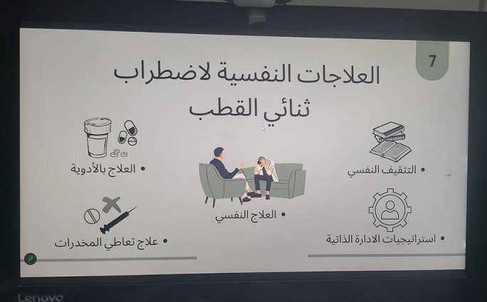هذا وأوضحت الأخصائيات النفسيات أن "الهوس عكس الاكتئاب" وأشارت إلى العلاجات النفسية لاضطراب ثنائي القطب منها: "العلاج النفسي بالأدوية والتثقيف النفسي، واستراتيجيات الإرادة الداخلية، وعلاج تعاطي المخدرات،" والعلاج الاجتماعي ومن أهمه الأنشطة والرياضة ومراقبة الذات ".