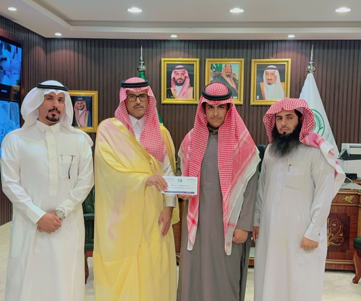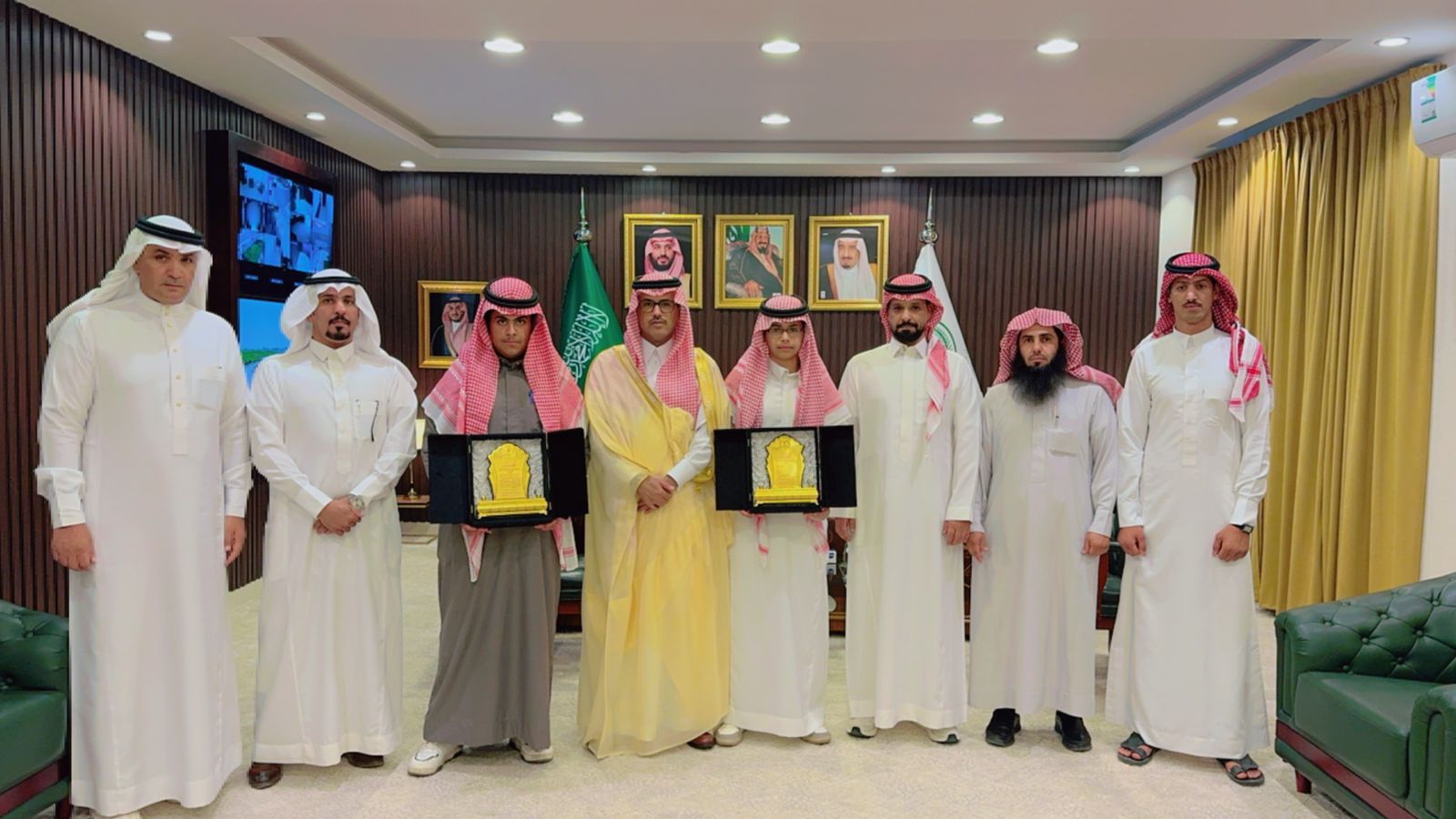كرم سعادة محافظ طبرجل الاستاذ نادر بن غالب العتيبي اليوم في مكتبه بالمحافظة الطالب نايف عبدالله البلوي من متوسطة بيان طبرجل الأهلية الحاصل على المركز الأول على مستوى المملكة العربية السعودية ببرنامج ريادي والذي اقيم في منطقة الباحة.