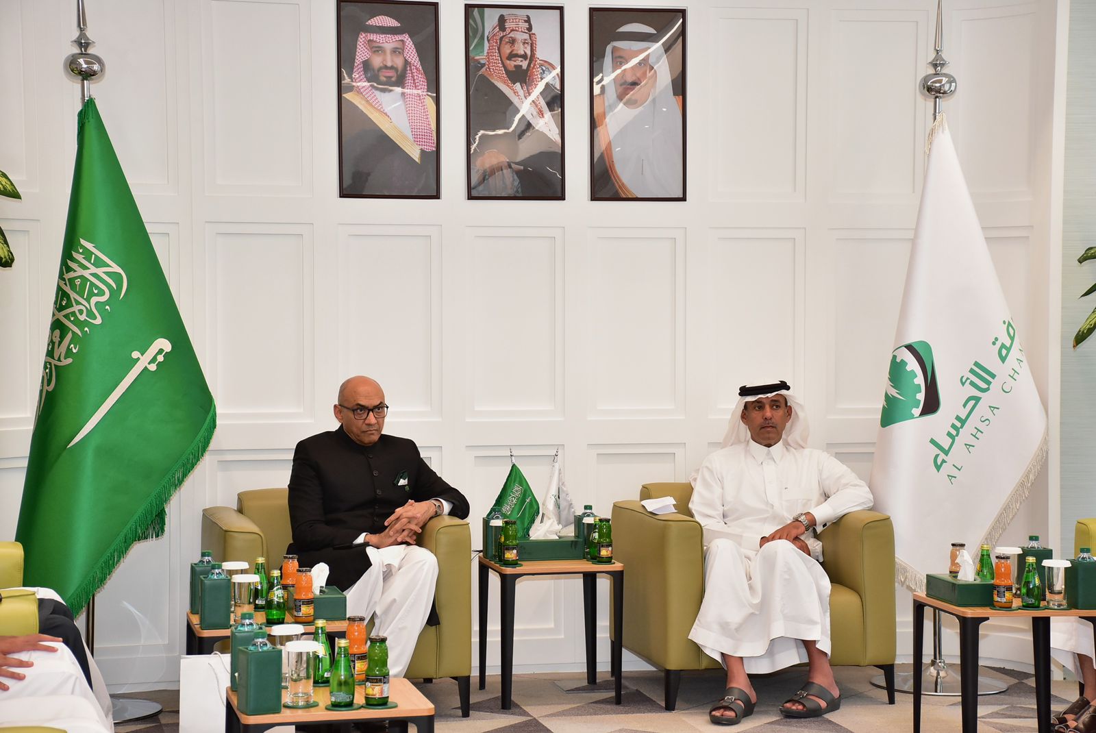 واستقبل الأستاذ عبدالعزيز الموسى رئيس الغرفة وعدد من أعضاء مجلس الإدارة ورجال الأعمال بالأحساء بمجلس الأستاذ صالح العفالق بمقر الغرفة، سعادة السفير والوفد المرافق له، حيث جرى تبادل الأحاديث الوديّة، وبحث فرص توسيع التبادل التجاري ومجالات الاستثمار والشراكة، وسبل تنمية العلاقات بين رجال المال والأعمال في الأحساء ونظرائهم في باكستان.