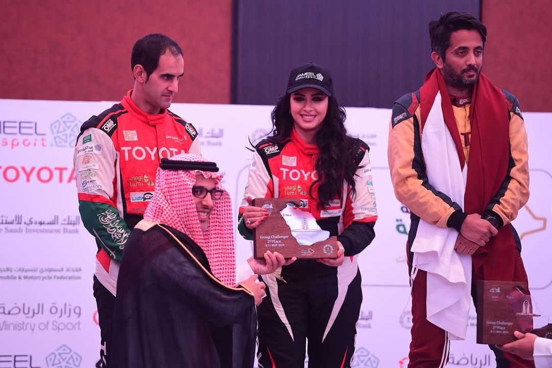 انتصار جديد للبطلة مها الحملي في المركز الثاني لفئة Challenger T3 والسادس في الترتيب العام ، ضمن رالي تبوك تويوتا 2024 والتي تعتبر الجولة الثانية من بطولة السعودية تويوتا للراليات ، ضمن عدد المشاركين الذين تجاوز عددهم الـ 90 متسابقاً ومتسابقة يمثلون 13 دولة من مختلف دول العالم، على 35 سيارة، و 18 دراجة نارية، و8 دراجات نارية رباعية العجلات ”كواد“.